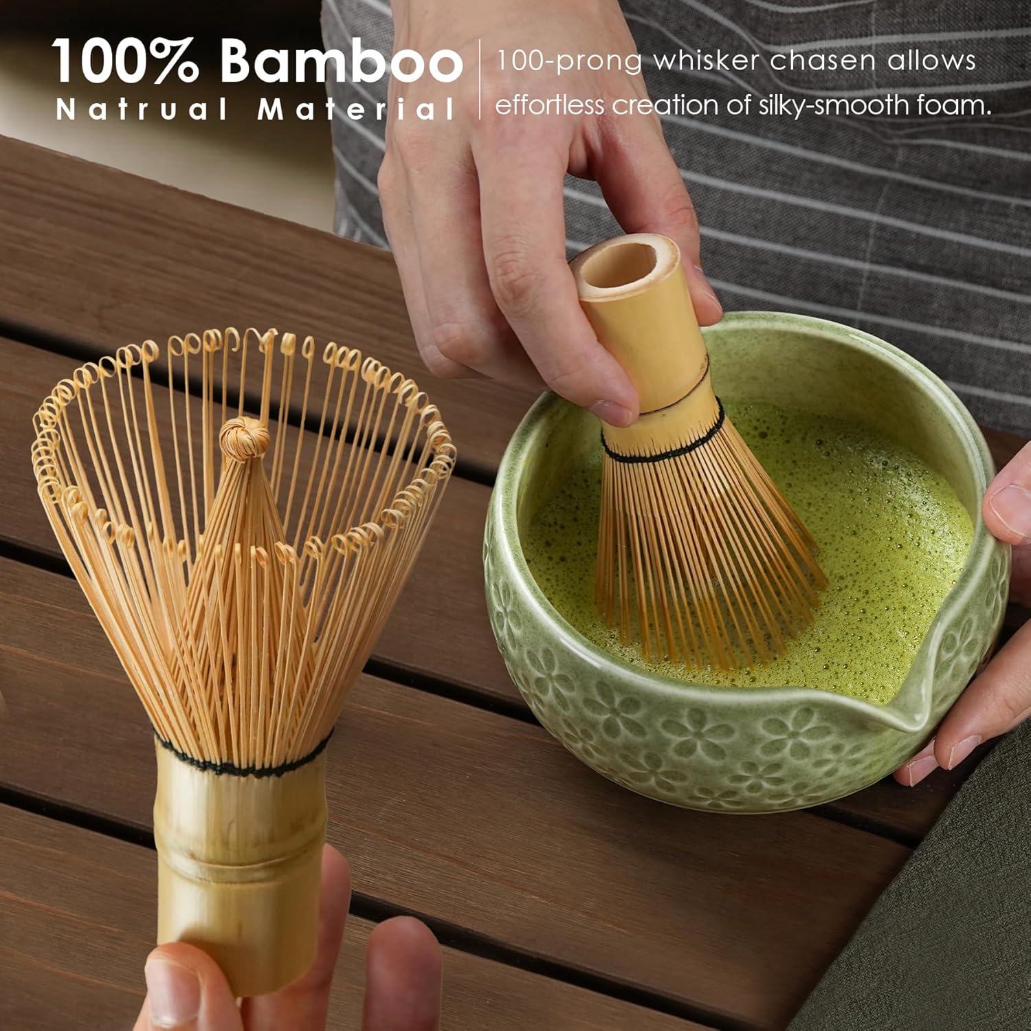 - [100 Prongs Bamboo Whisk Optimized for 15s Microfoam] Foam in a Flash! Sick of waiting ages for that perfect matcha froth? Our Handcraft Matcha Whisk, about 76 Fine Tines, 100% crafted from pure natural bamboo with vegetable oil finish to enhance durability. Whisk vigorously 15 seconds, making an "M" or "W" shape, it whips up velvety microfoam with ease, no more clumpy. Ideal for leisure morning or afternoon time you crave café-quality tea in a snap!