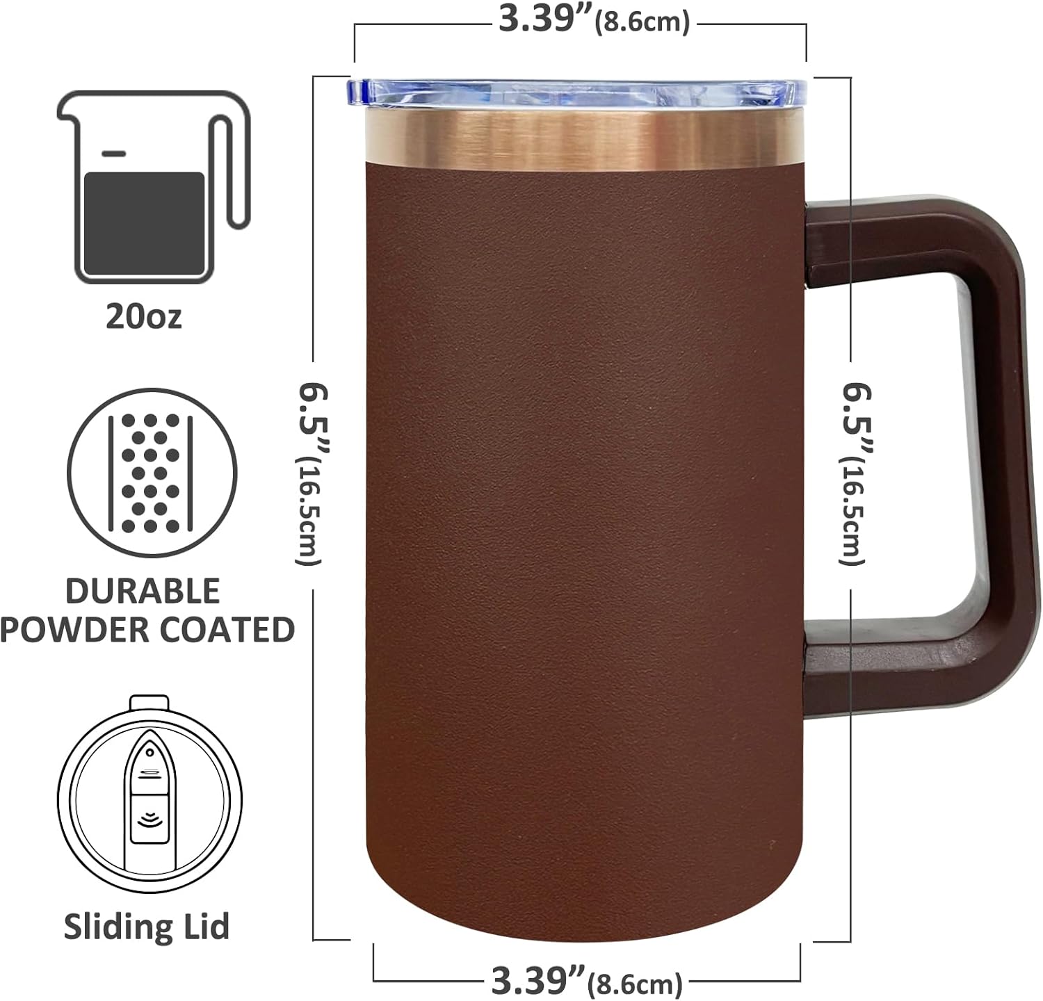 - Premium Material: Metalya 20 oz tumbler with handle is made of Food-Grade 18/8 stainless steel, wear-resistant and durable, not easy to break, will not rust; The plastic sliding lid is made of AS and contain no BPA, transparent and lightweight, high temperature resistant and not easy to broke; Safe tumblers bring you a healthy drinking need