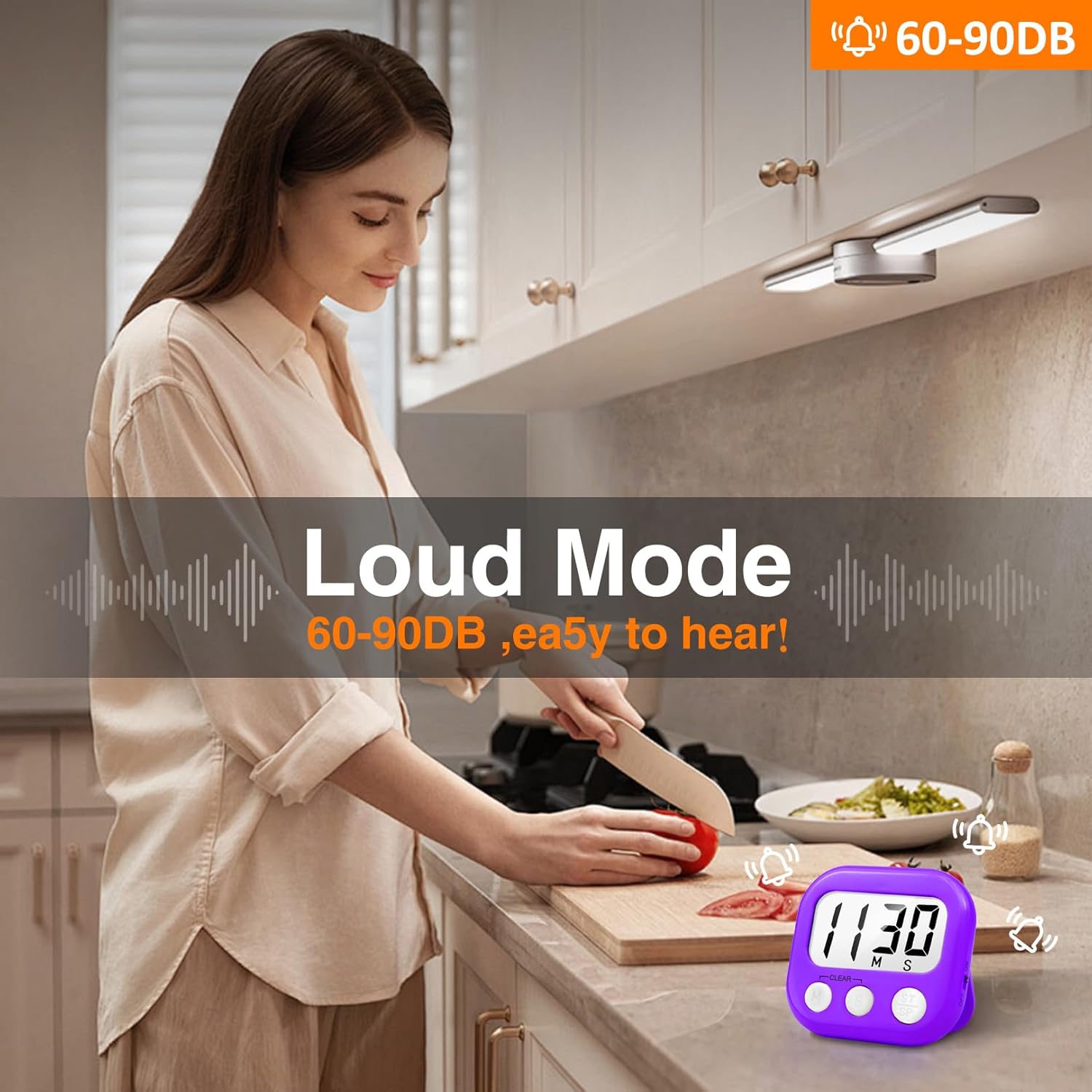 2 Pack Digital Kitchen Timer for Cooking Big Digits Loud Alarm Magnetic Backing Stand Cooking Timers for Baking Purple