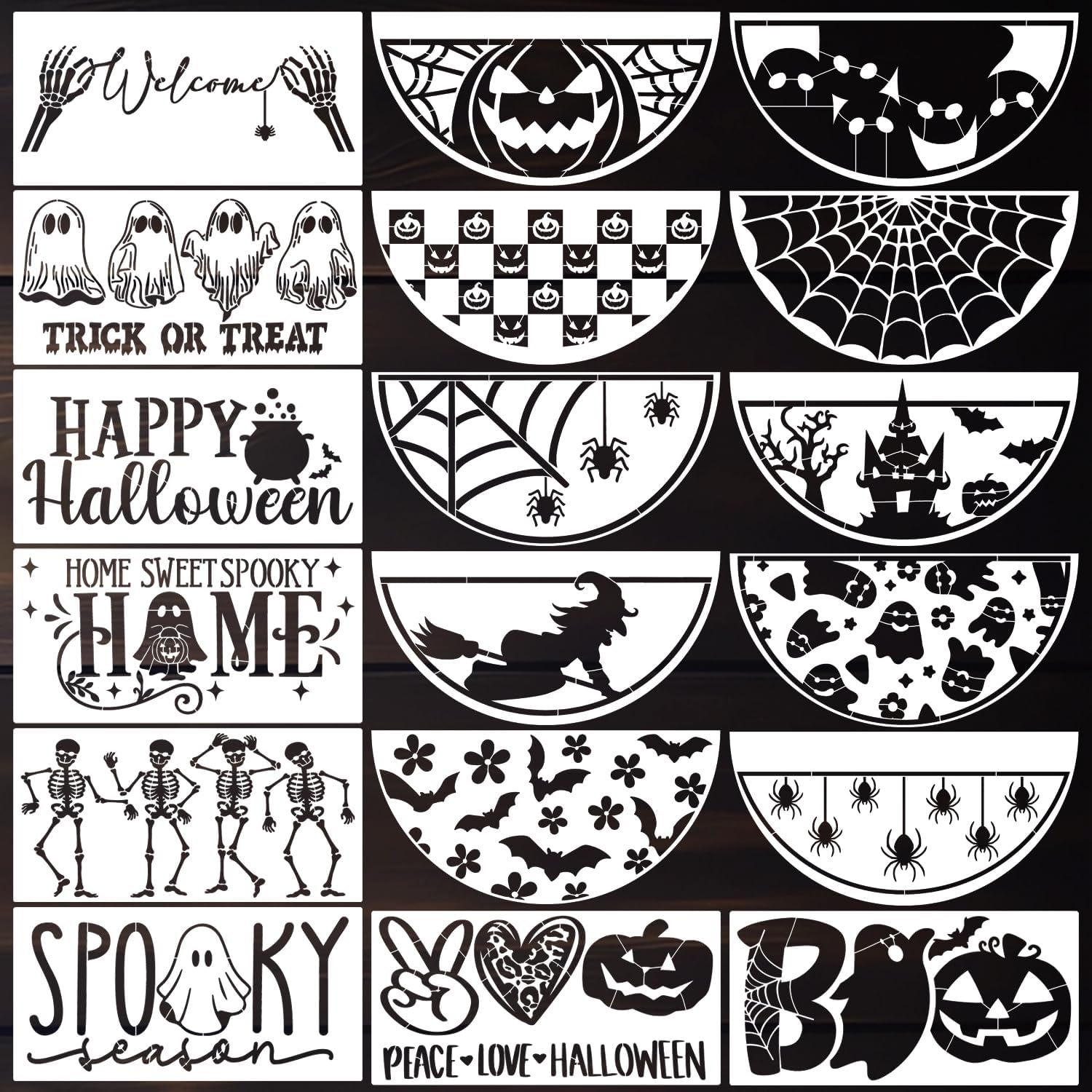 - Package Included: 18pcs Halloween Stencils are 11.8x6inch.You can decorate doormat,wood sign,pillow cover.