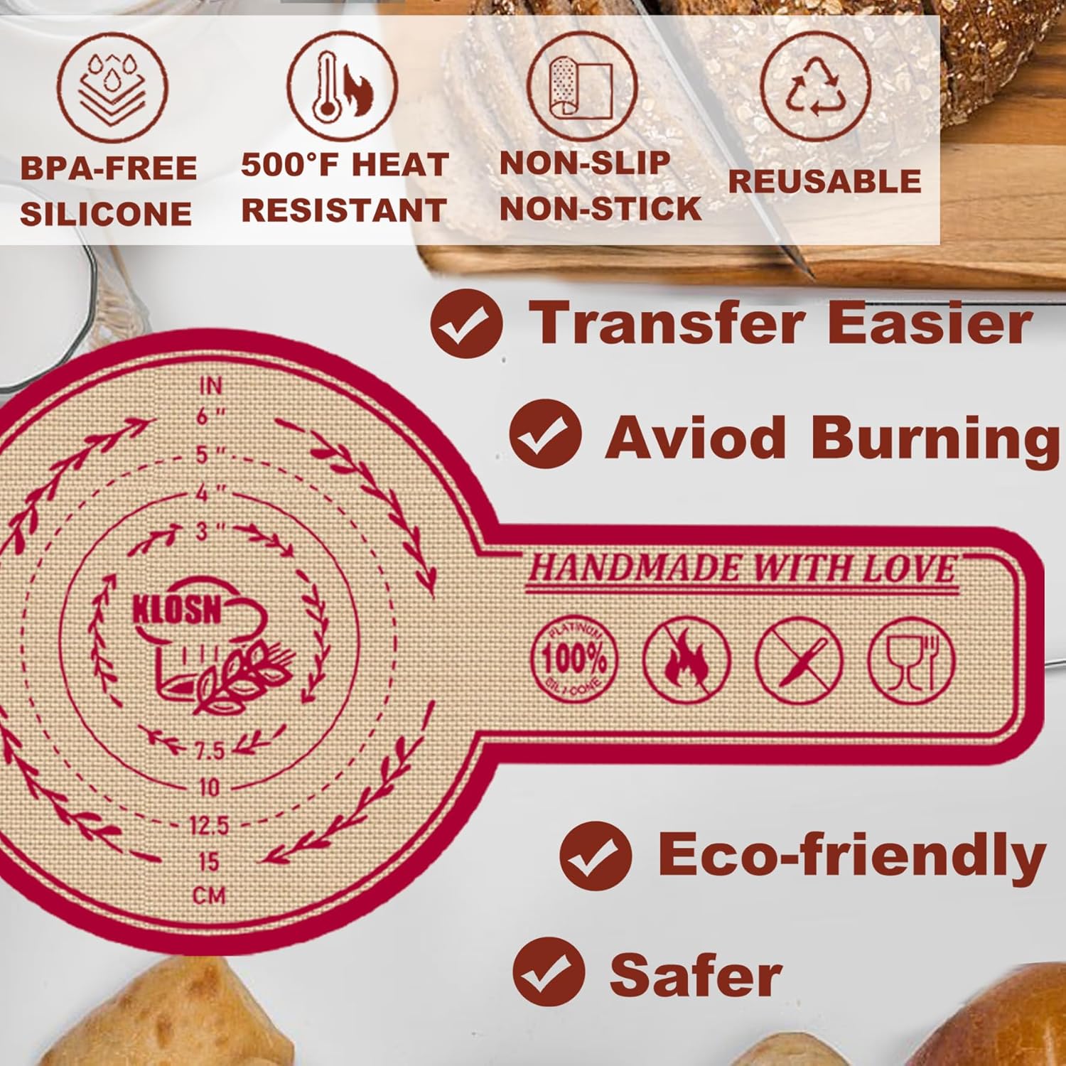 - Non-Stick and Slip-Resistant Design: The silicone bread sling features a premium non-stick surface that prevents sour dough from sticking, making the transferring process smooth. The bread mat’s non-slip backing ensures the mat stays firmly in place while you work.