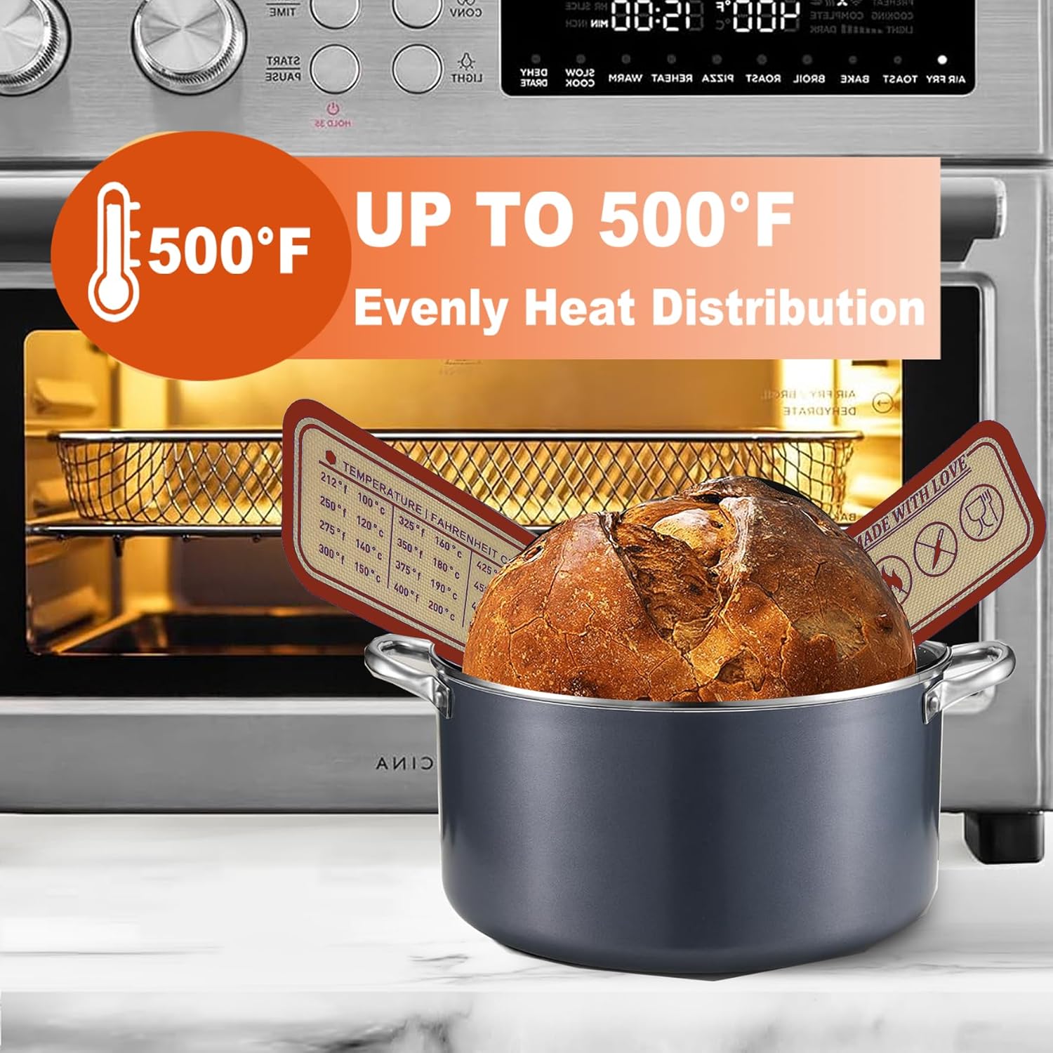 - 500°F Heat-resistant & Food-grade Silicone: Made from a strong yet flexible fiberglass core and BPA-free food-grade silicone, sourdough silicone bread slings are safe and heat-resistant. The sourdough sling can withstand temperatures up to -40°F to 500°F, ensuring even heat distribution and preventing the bottom from burning for the dutch oven.