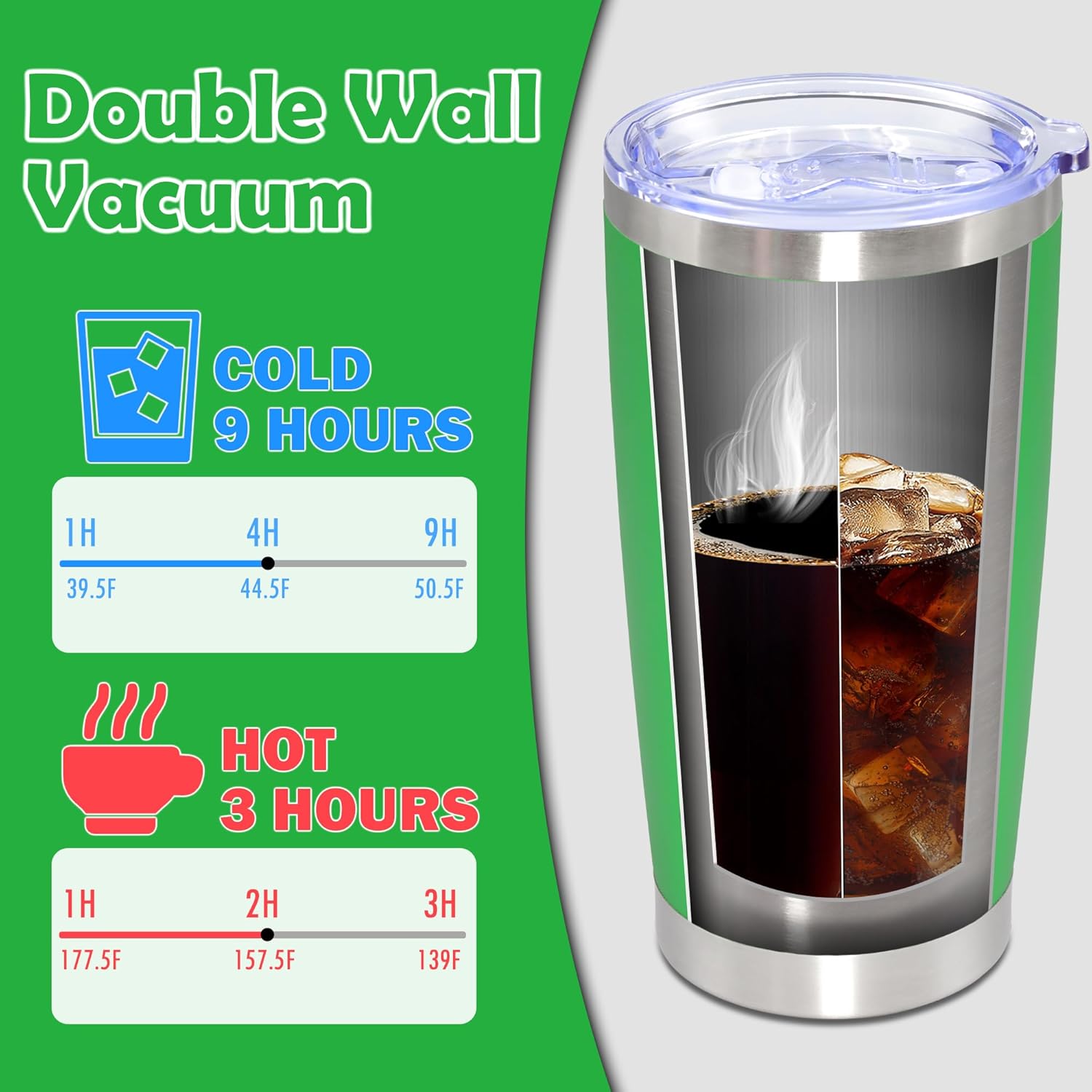 - Insulated Coffee Mug: Coffee tumbler is built with double-layer vacuum insulation technology. Keeps drinks warm for 6 hours and cold for 12 hours.