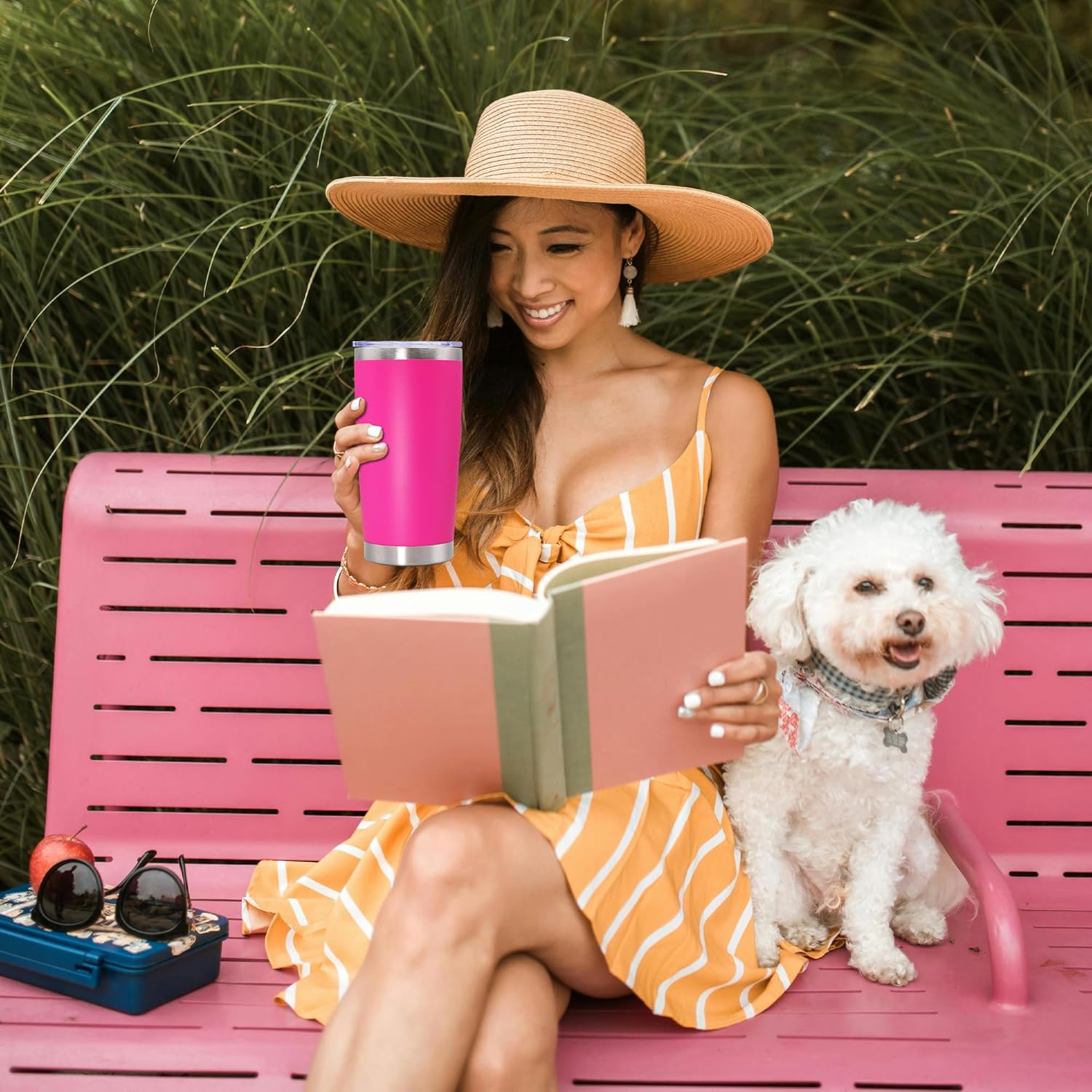 20oz Tumbler Stainless Steel Tumbler Cup with Lid Vacuum Insulated Double Wall Travel Mug, Durable Powder Coated Travel Coffee Tumbler Mug for Hot & Cold Drinks, Hot Pink,1 Pack