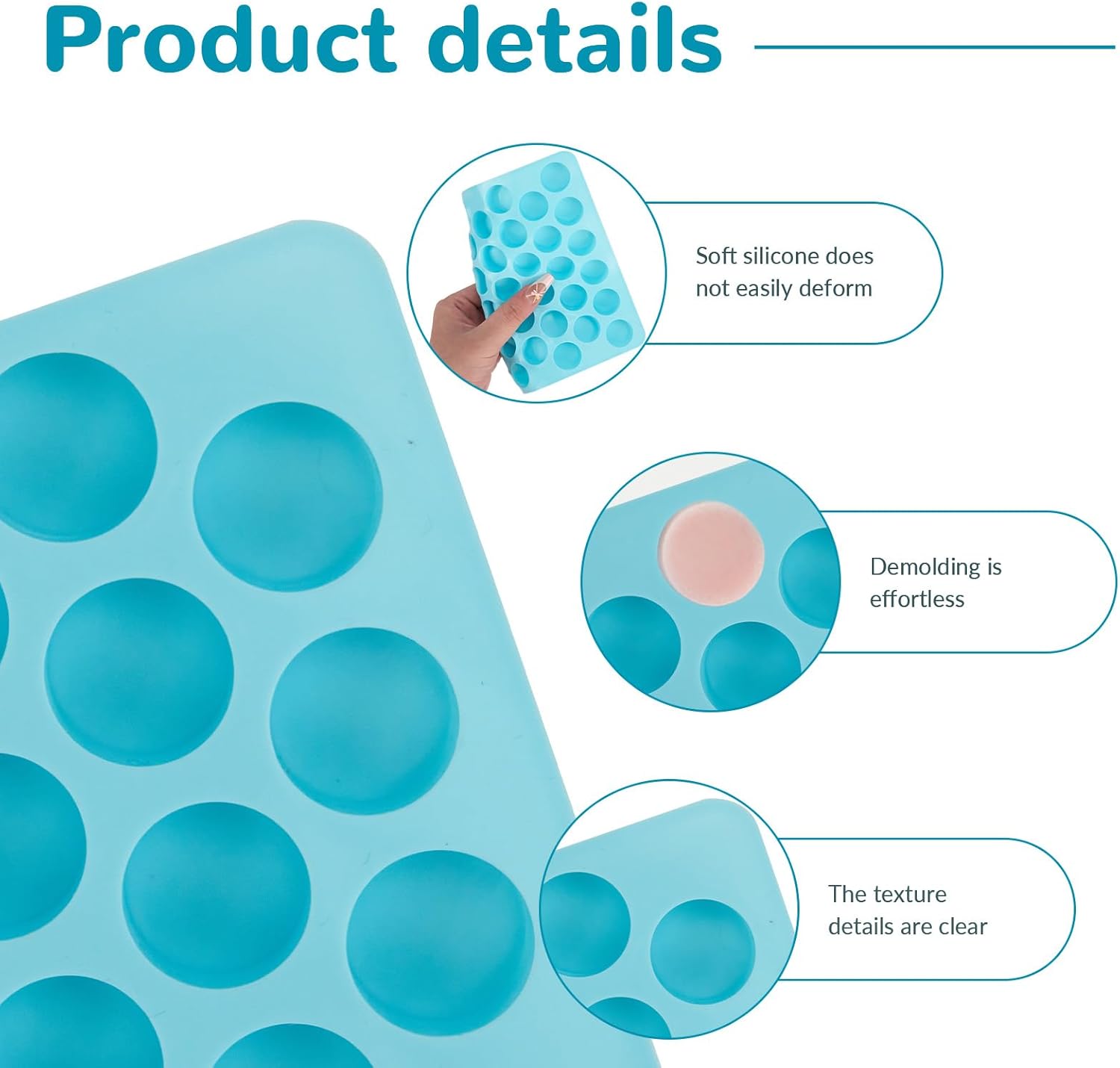 3 Pcs Round Chocolate Silicone Molds for Candy, Gummy, Caramels, Ganache, Ice Cubes, 55 Cavity Per Piece