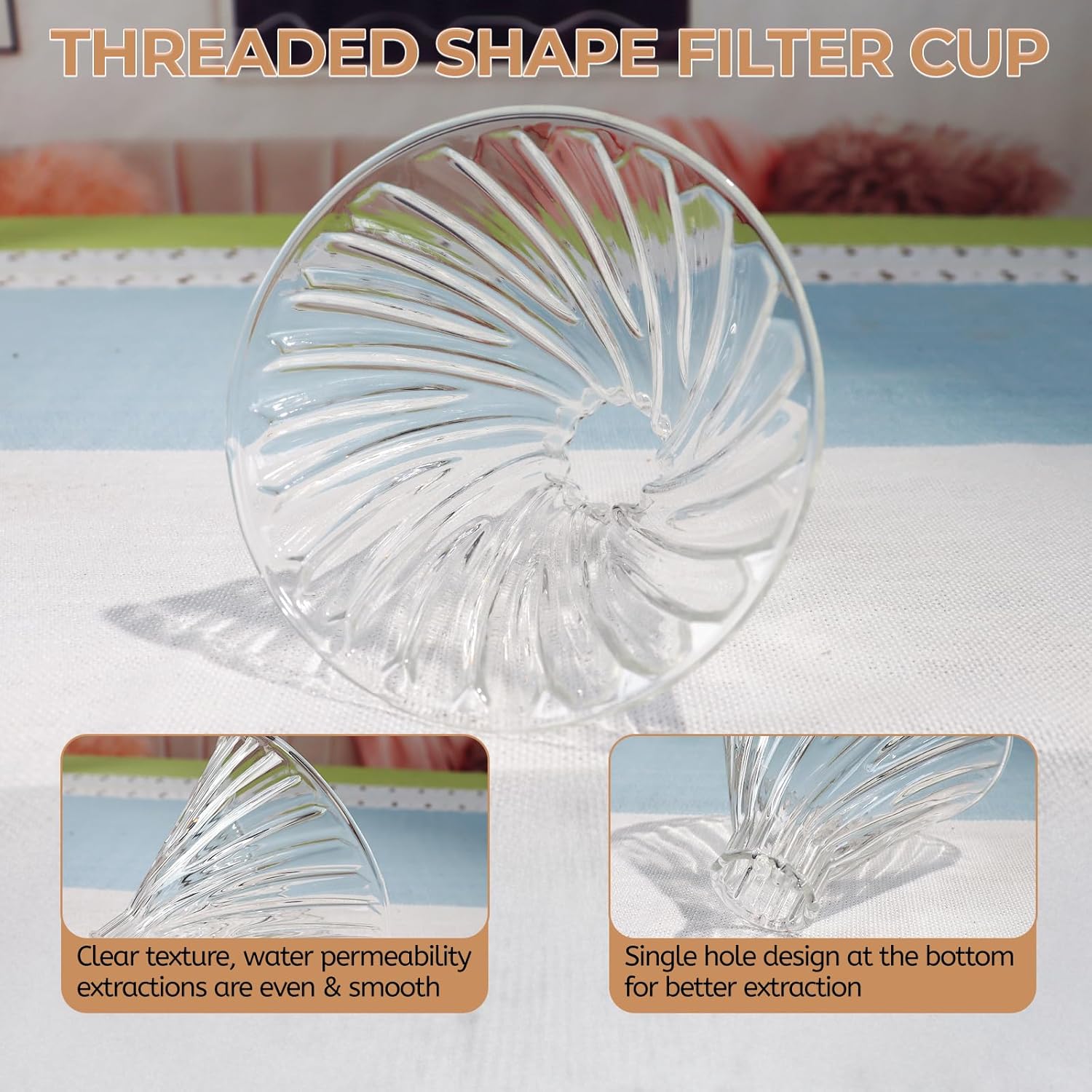 - 100pcs V60 Cone Paper Filters: The included 100 pieces of natural pure wood pulp filter paper are molded by high-temperature crimping process, strong and sturdy without adhesive, not easy to break and leak when brewing. The texture of the filter paper is fine and even, which can effectively remove most of the coffee oils and particles in the process of drip coffee filtration, while maintaining the original flavor of the coffee, and realizing fine filtration without residue