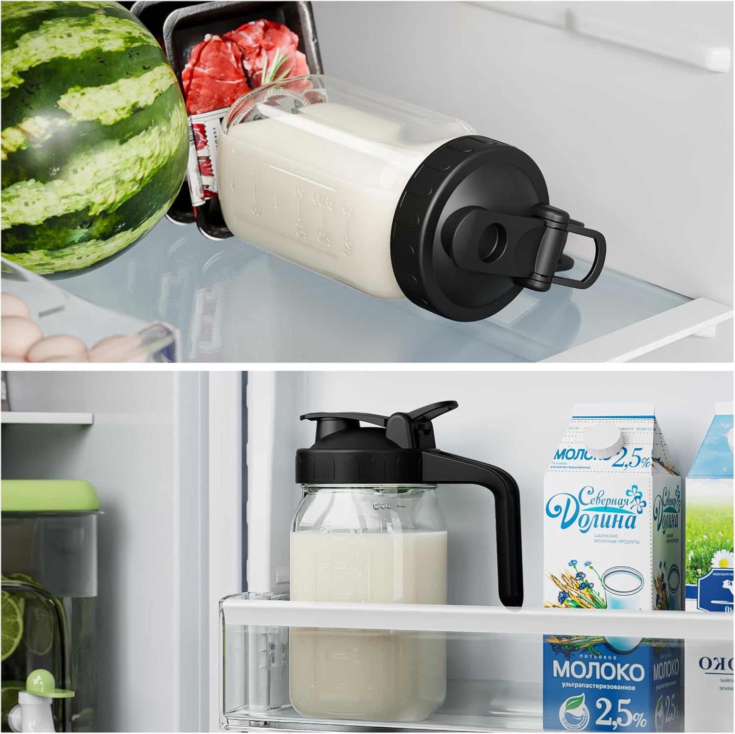 - 【Spout Sealed Lid with Handle】 - The 32oz jug with silicone seal in the pour spout lid, Leak proof and better maintain the freshness and taste of the beverage, avoid mixing the smell of other foods in the fridge. The flip-top lid is easy to pour and the jug is securely fastened to the lid