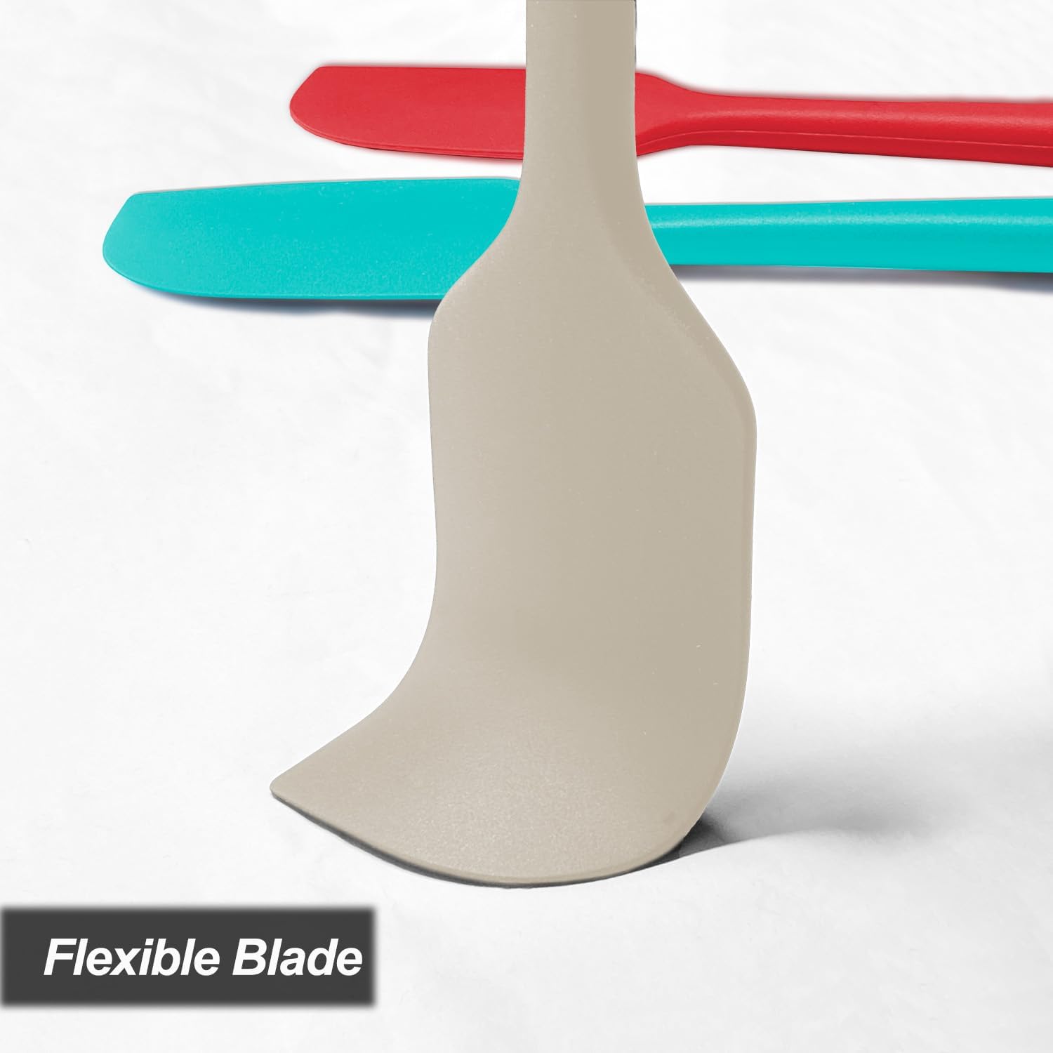 - STRONG, NON-TOXIC and FADE RESISTANT - Every component has been designed with safety, durability and your family in mind. Our solid core construction provides a heavier, stiffer feel that won’t bend or break for years of use. Wrapped in BPA free pro grade silicone means our spatulas are non-toxic, lead free, and odourless and won’t release harmful chemicals during cooking unlike typical nylon or rubber spatulas.