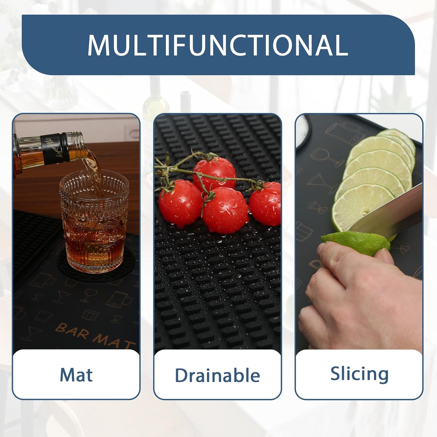 - 🚀 UNFOLD PROFESSIONAL BARTENDING ANYWHERE: This versatile 3-in-1 silicone mat combines a spill-catching drying mat, a removable cutting board for garnishes/fruit, and an integrated rimmed tray for perfect salt/sugar glass rims. Instantly create a dedicated, mess-free cocktail station on any countertop!