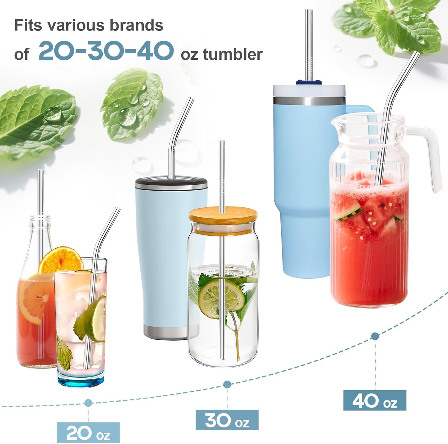 Set of 12 Reusable Stainless Steel Straws,0.31'' wide 3 Size - 12.2''10.5''8.5''Long Reusable Straw Chocolate Milk Straws with 2 Cleaning Brush for 10/20/30/40 oz