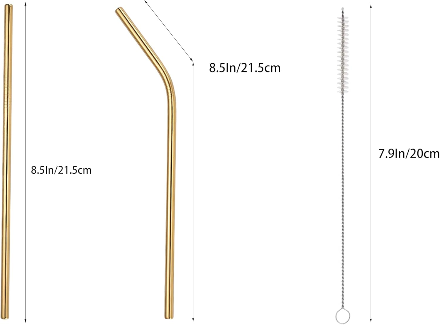 10 Pcs Stainless Steel Straws, Reusable Drinking Straws, 5 Straight + 5 Bent Metal Straws Set With 2 Pcs Cleaning Brushes (Gold, 8.5 Inch)