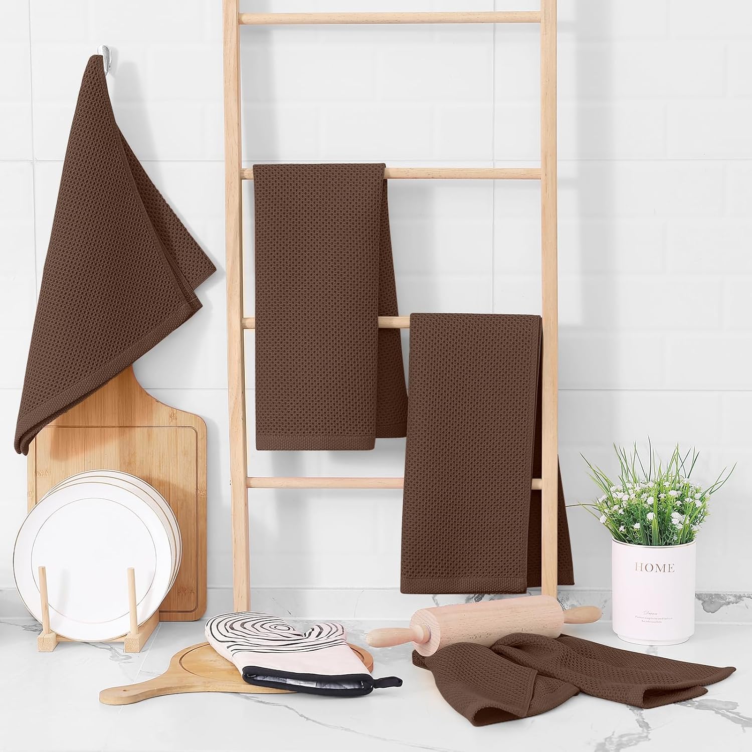 Homaxy 100% Cotton Waffle Weave Kitchen Dish Towels, Ultra Soft Absorbent Quick Drying Cleaning Towel, 13 x 28 Inches, 6-Pack, Coffee