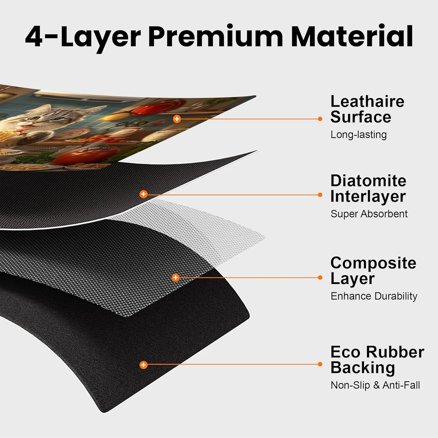17"x 32" Coffee Bar Mat, Cat Chef Absorbent Dish Drying Mat Cuttable Hide Stain Draining Table Pad for Kitchen Counter, Coffee Bar Accessories