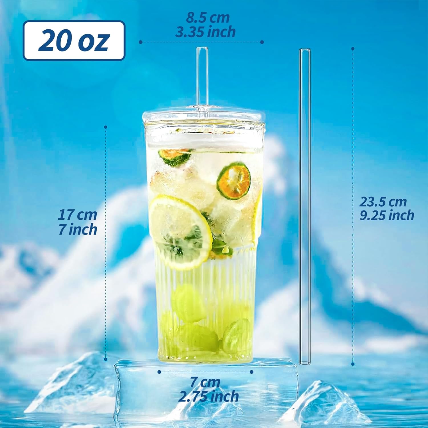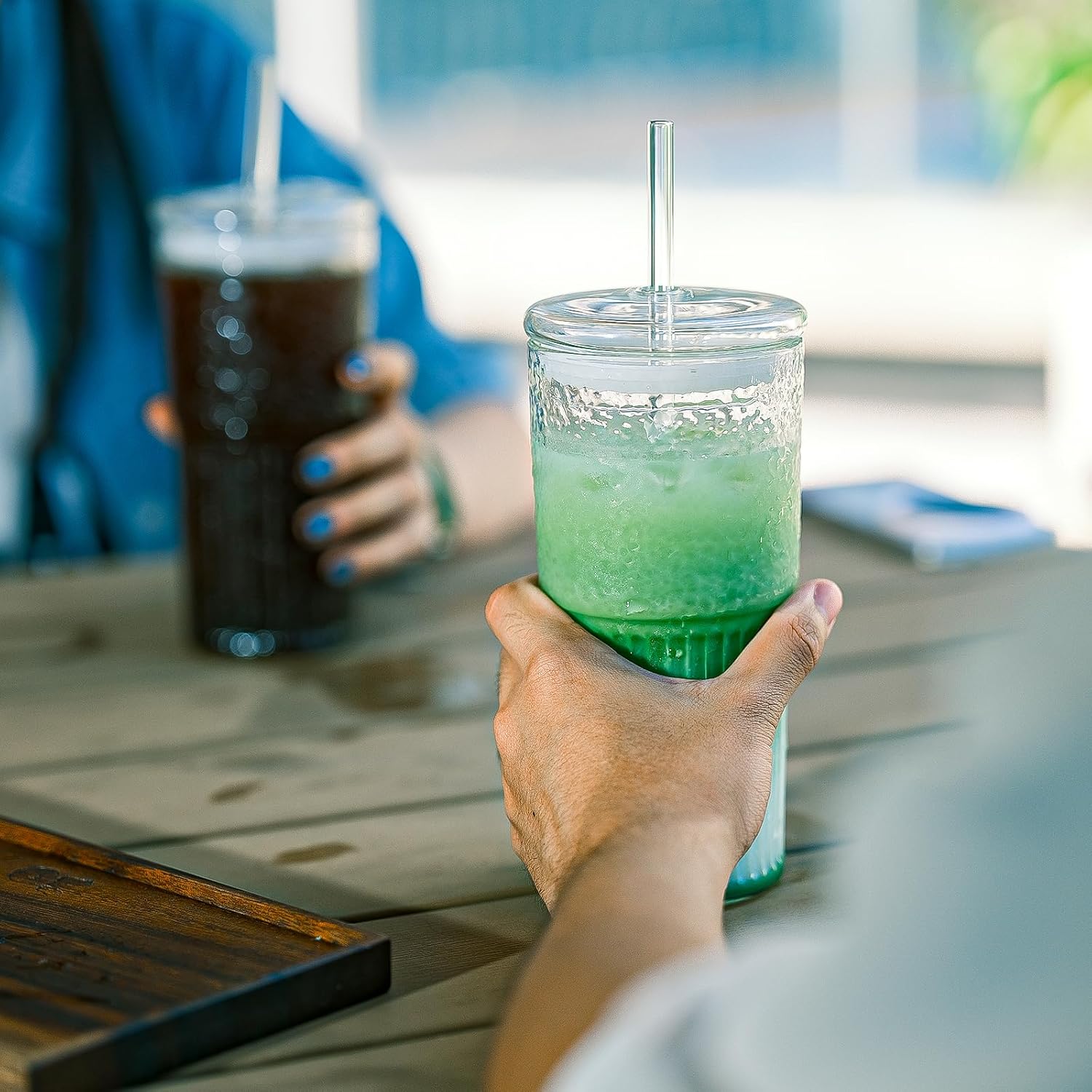 - Complete 2-Piece Set with Extra-Large Capacity: Includes 2 ribbed frosted 22oz glass tumblers (extra-large capacity), 2 glass lids, 2 glass straws, and 1 straw brush—everything for a great drinking experience.