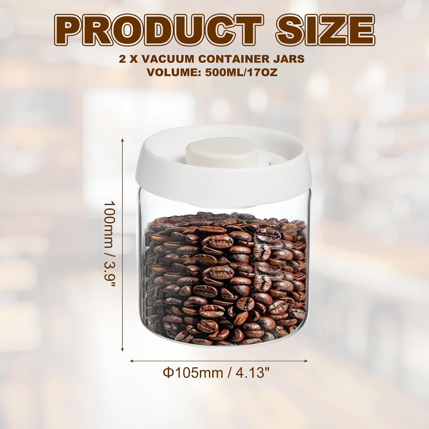 uxcell 2pcs Coffee Vacuum Container, 500ml/17oz Glass Coffee Bean Storage Container with Lids for Spices Biscuits Loose Leaf Tea, White
