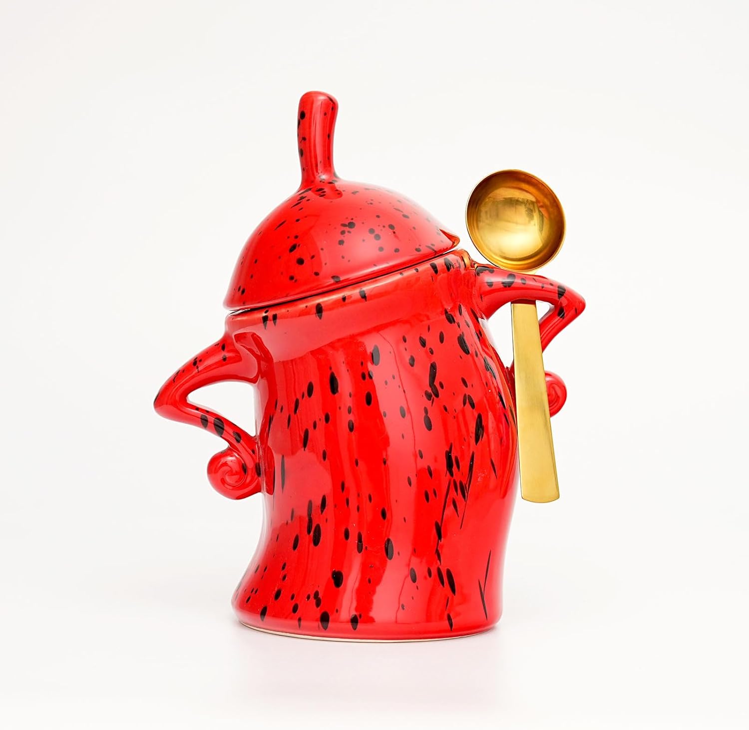 Canister With Attitude - Attitude Jar, Ceramic Airtight Food Storage Container with Spoon for Tea, Coffee, Sugar, Flour, Cute Kitchen Decor (Red)
