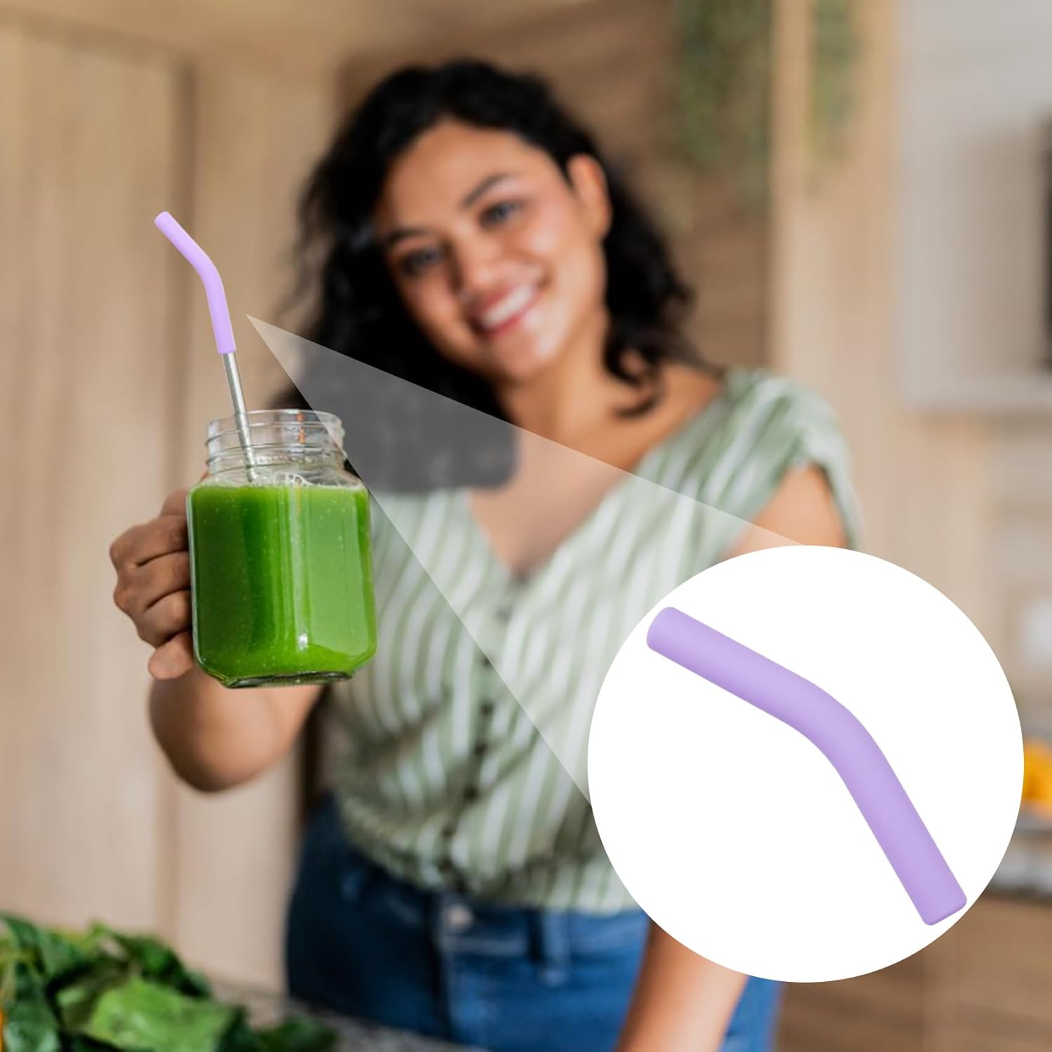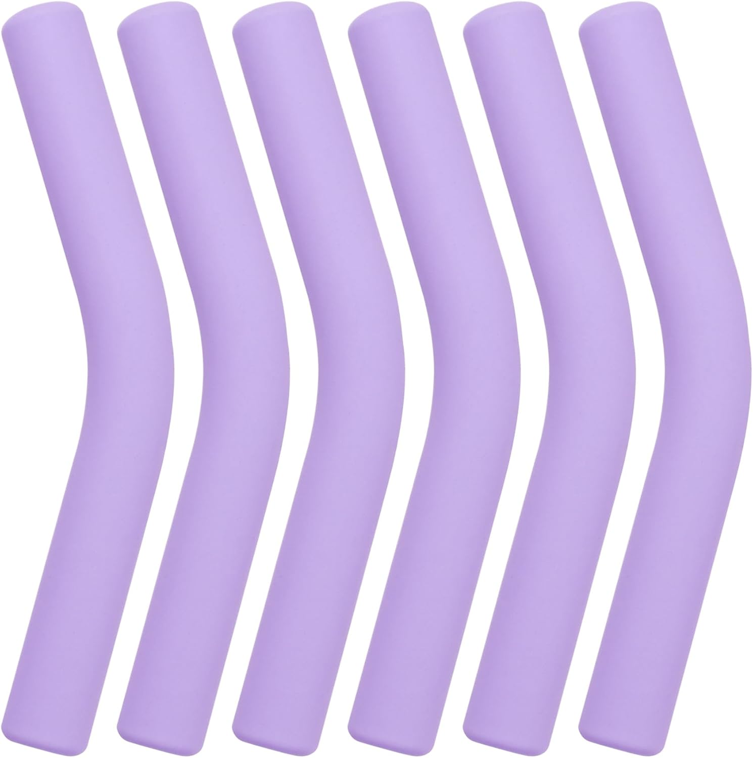 6pcs Food-Grade Silicone Metal Straw Tips, Reusable Flex Elbow Straws Cover Replacement Tips, Soft Straw Toppers Kits for 8 mm Stainless Steel Metal Straws - Light Purple