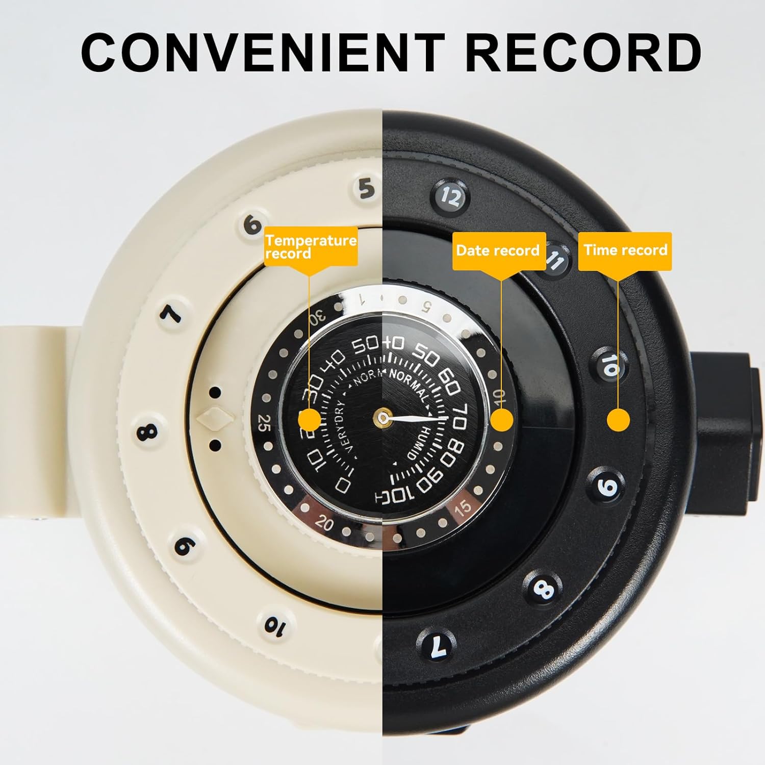 - Humidity Monitor: A relative humidity range of 40% to 60% is considered an optimal storage environment for coffee beans. Our coffee canister's humidity monitor lets you easily determine if your beans are in optimal storage conditions, ensuring their freshness and flavor are maintained.