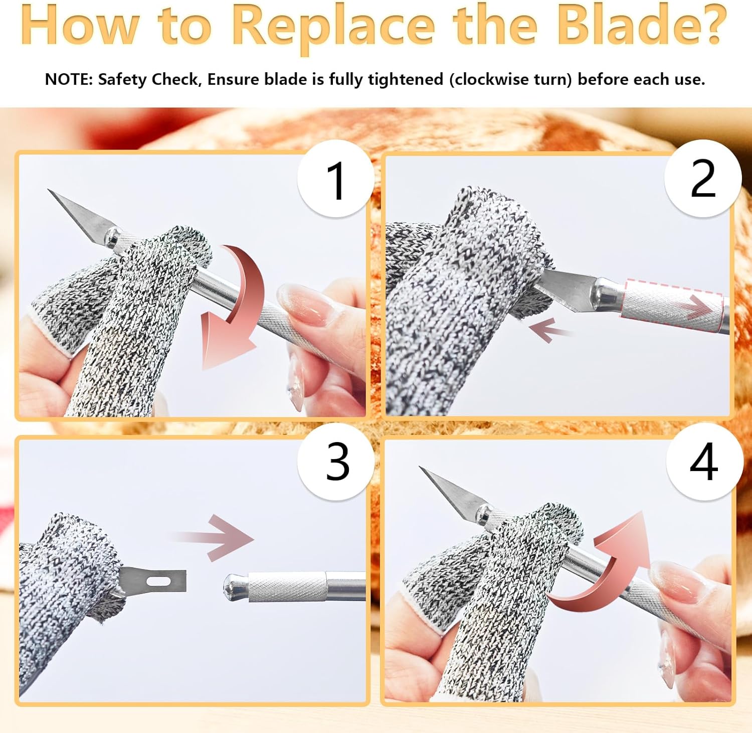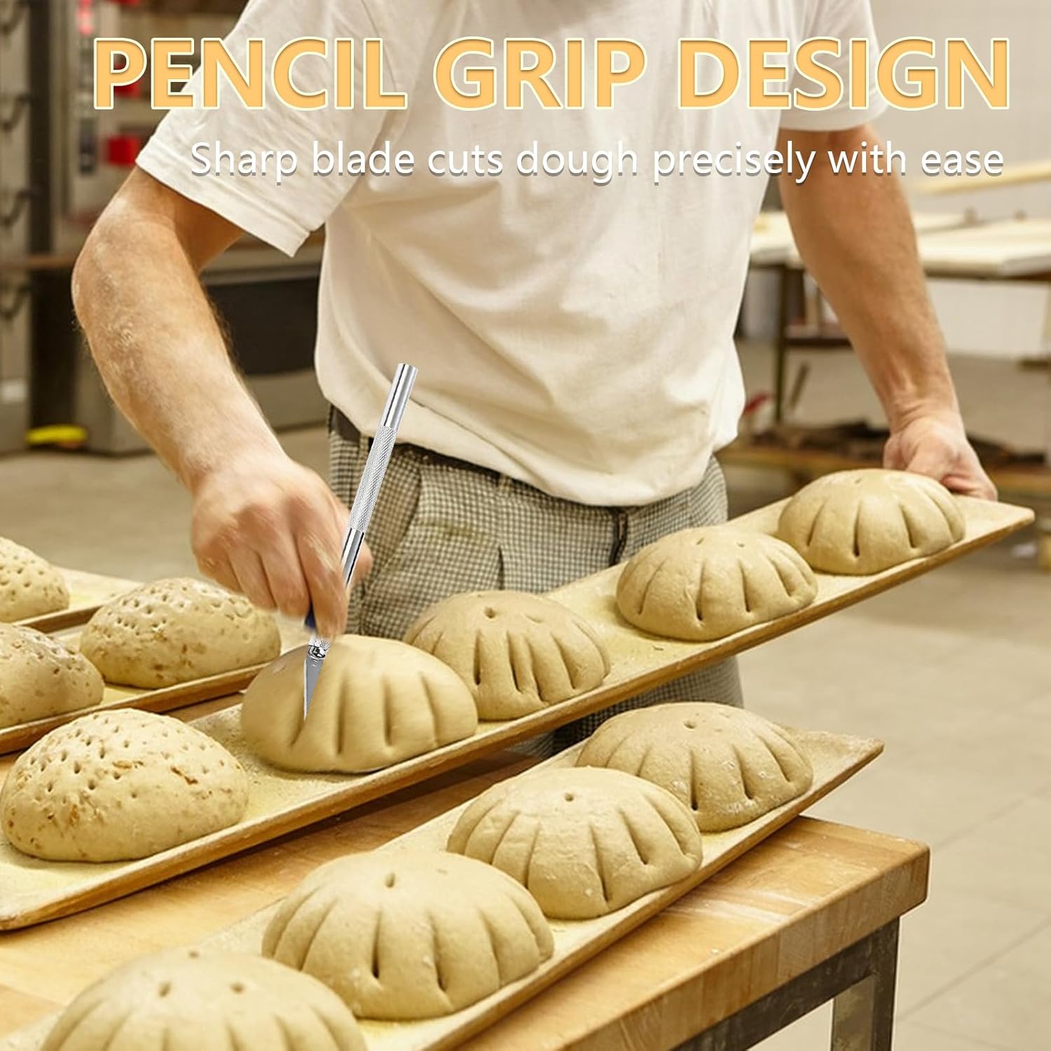 - All-In-One Kit:Includes 11 ultra-sharp replacement blades,2 finger protection sleeves,a safety storage cover,and a pattern marking string.Experiment with deep rustic slashes,intricate rosette designs,or personalized motifs—all essential tools for elevating sourdough from homemade to gallery-worthy