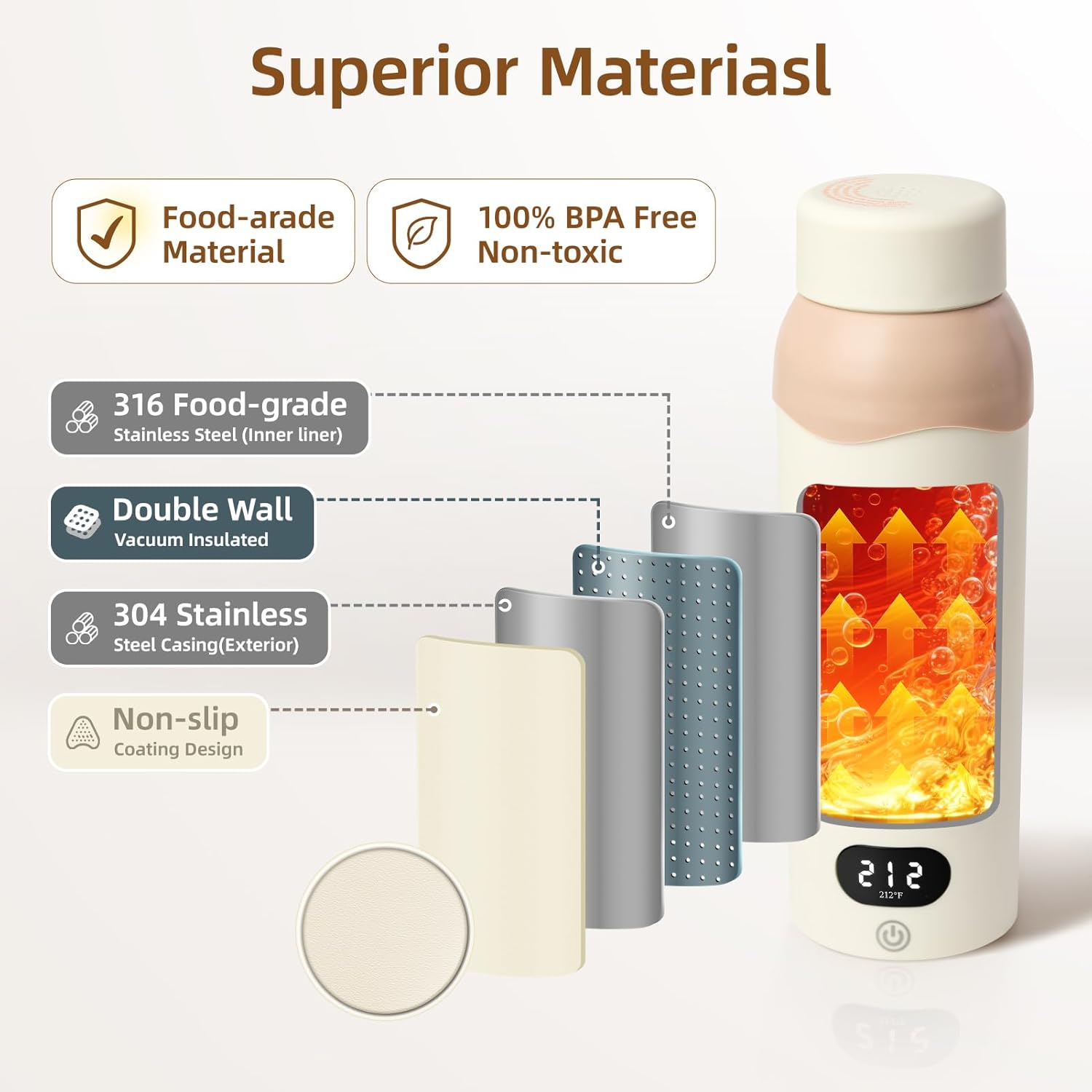 - Special Feature : Food-Grade 316 Stainless Steel,BPA Free, One-click Temperature Control, 4 Smart Preset Temperature,LED Display,Automatic Shut-Off, Double Wall,Boil Dry Protection, Leakproof Design, Portable & Lightweight Food-Grade 316 Stainless Steel,BPA Free, One-click Temperature Control, 4 Smart Preset Temperature,LED Display,Automatic Shut-Off, Double Wall,Boil Dry Protectโฆ See more