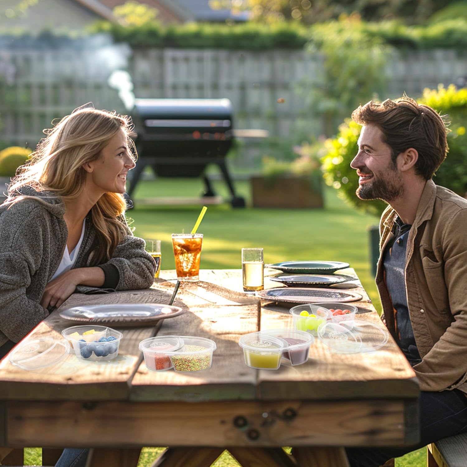 20pcs Reusable Snack Containers with Lids, 2 Compartment Snack Pack Containers for Fruits Candy Sauce Spices