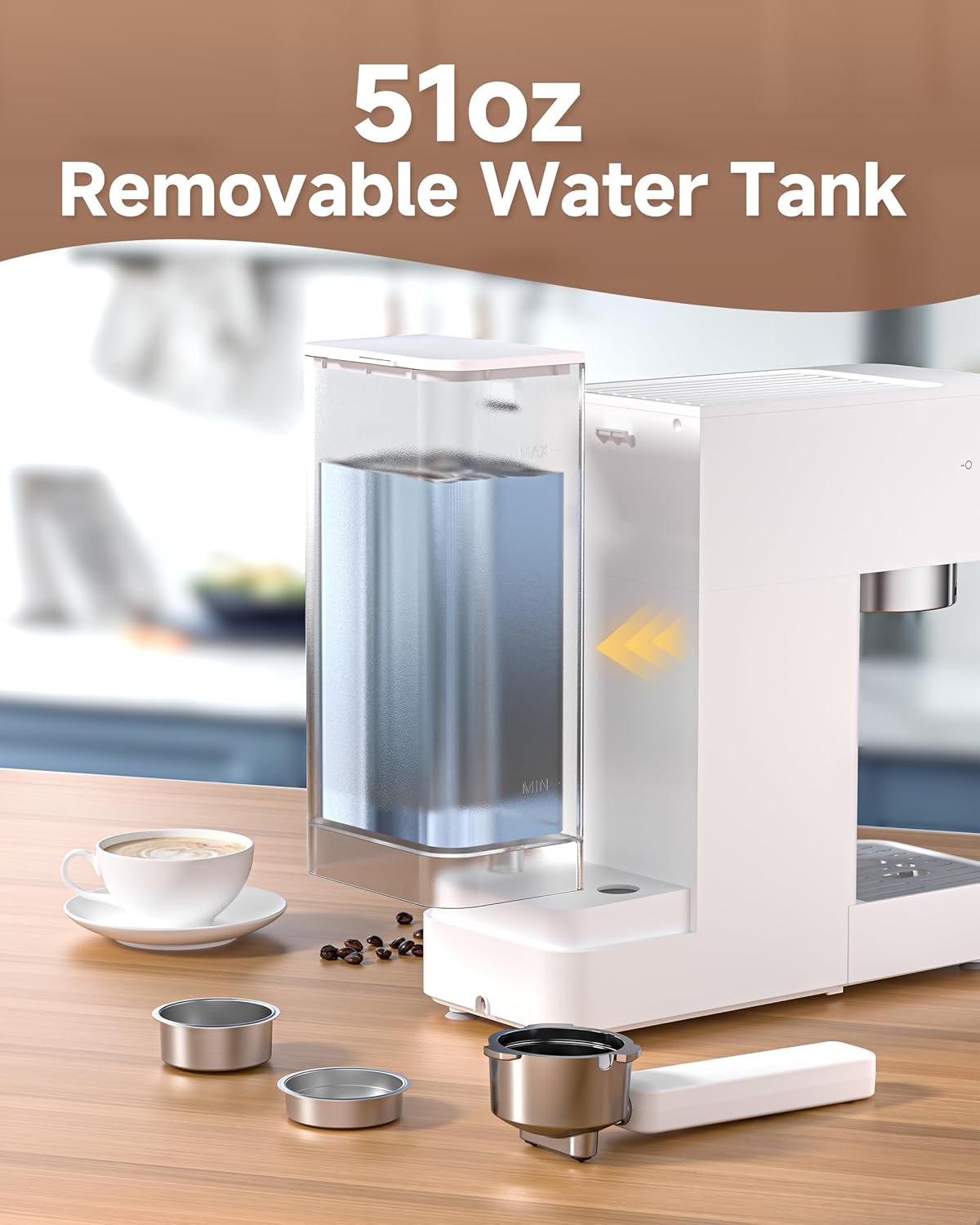 - 1350W Efficient Heating - Powerful preheating system heats in just 30 seconds while warming cups to preserve optimal temperature and flavor. With PID temperature control system controls the water temperature to a precise +/- 2°C, ensuring optimal espresso extraction