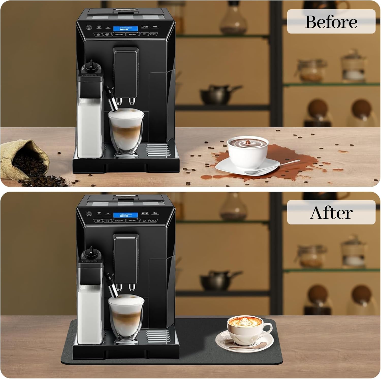 - 【Powerful Absorption/3.5mm Thick】This espresso mat is made of absorbent material that can suck up spilled coffee when you use the coffee machine or espresso maker, no need to wipe the sink countertops every time after using the coffee mats for countertop.