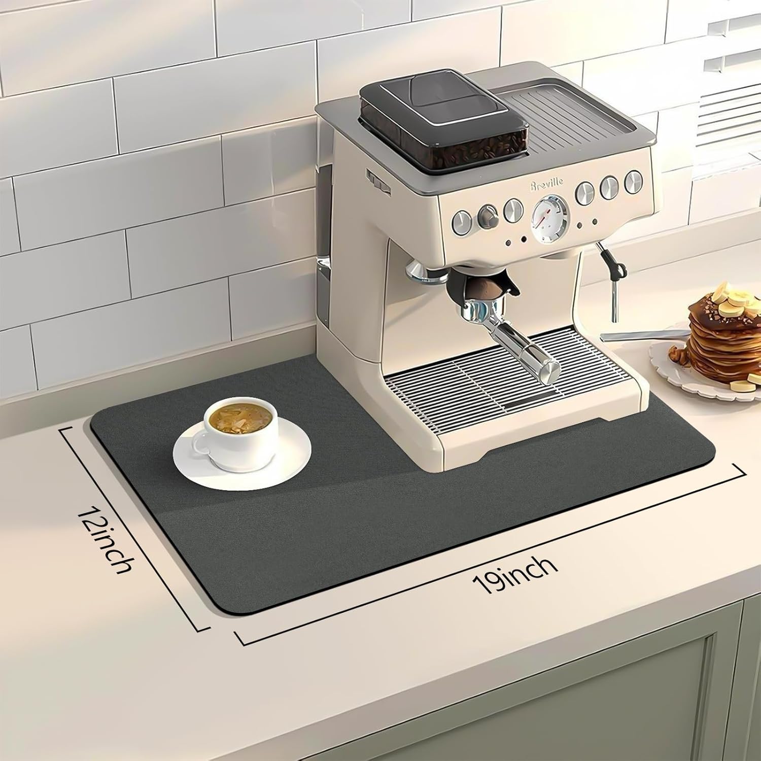 Bloss Coffee Mat, Dish Drying Mat for Multiple Usage, Coffee Bar/Maker Mat, Kitchen Counter Mats, Absorbent Hide Stain Rubber Backed Dish Drying Pad(12.2"x19.7", Dark Gray)