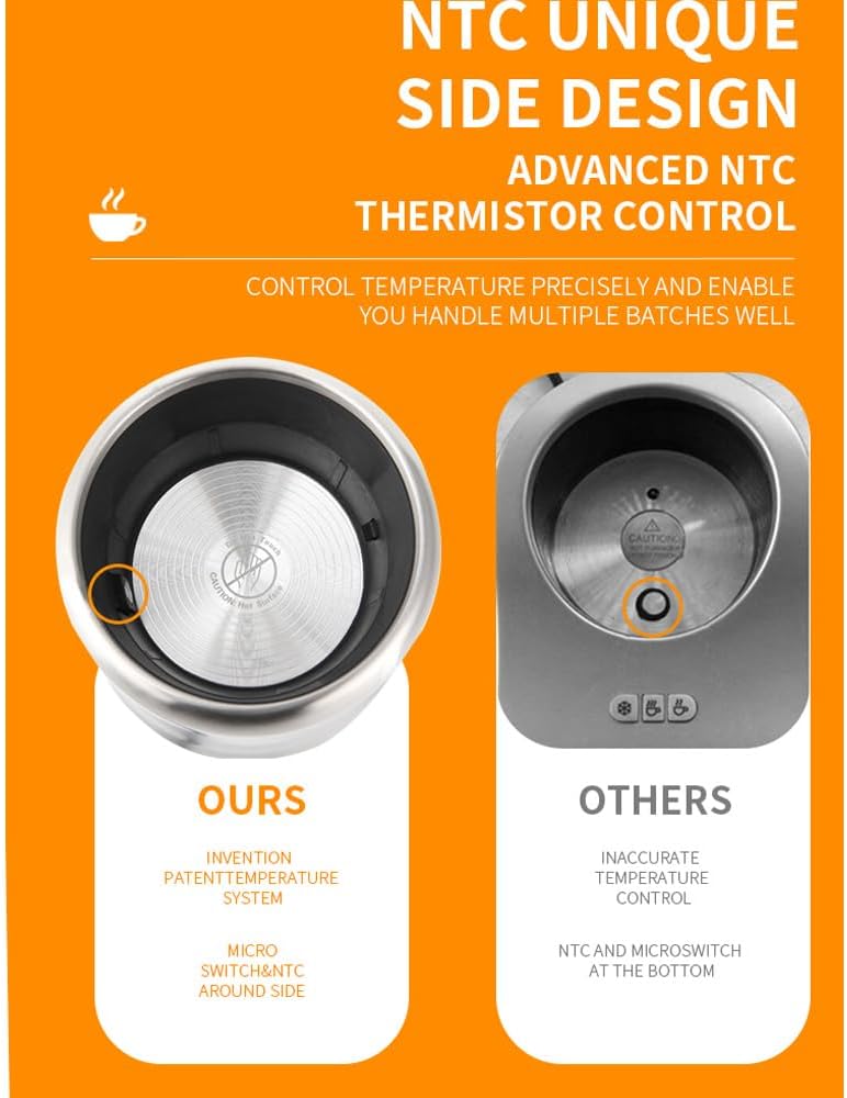 - STURDY& SAFE: 304 stainless steel milk frother is durable, safe and easy to clean, non-slip base to solve the safety concerns when operating, especially in the busy morning! Includes dry cooking protection and automatic shut-off for safety.