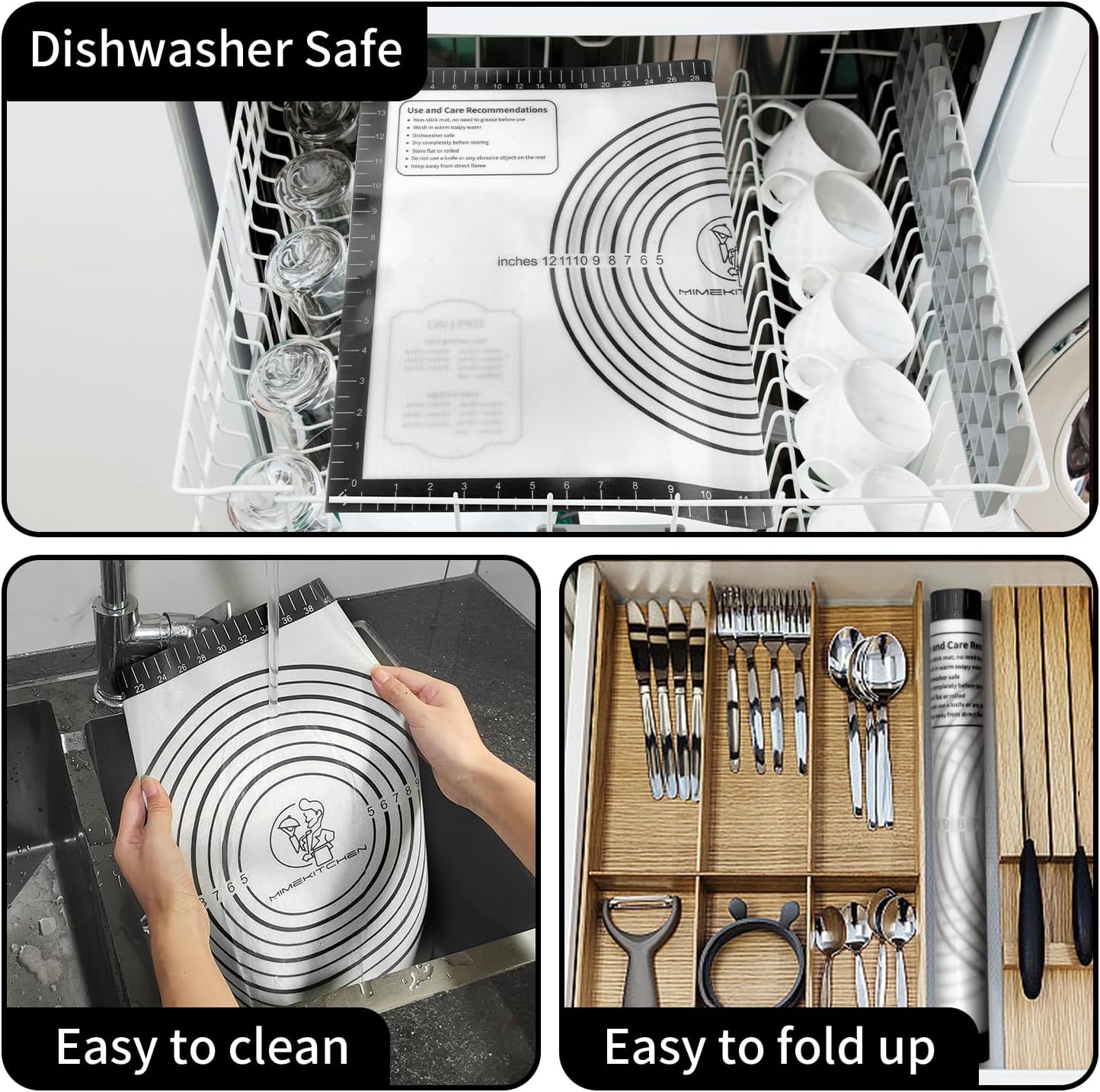- ใ๐๐๐-๐๐๐๐๐๐ ๐๐ข๐ฅ๐ข๐๐จ๐ง๐ ๐๐๐๐๐๐ ๐๐๐ใ๏ผThe non-stick working surface don't need flour to prevent sticking, the dough will slide, turn and roll easily! It works for any food like cookies, pie dough, fondant, and many others! Even if grease or dough sticks to the surface, baking mat can be easily cleaned up. The non-slip bottom keeps the silicone mat staying in place on countertops well and won't slip and slide around.