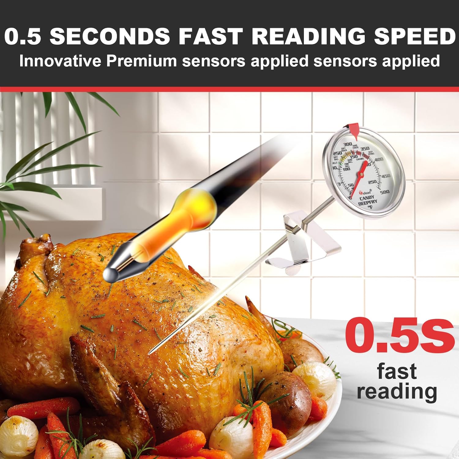 - 【Professional Precision】Detects critical sugar stages (thread 230°F - hard crack 310°F) and monitors frying oil up to 550°F. Dual-scale dial instantly converts Celsius for international recipes.