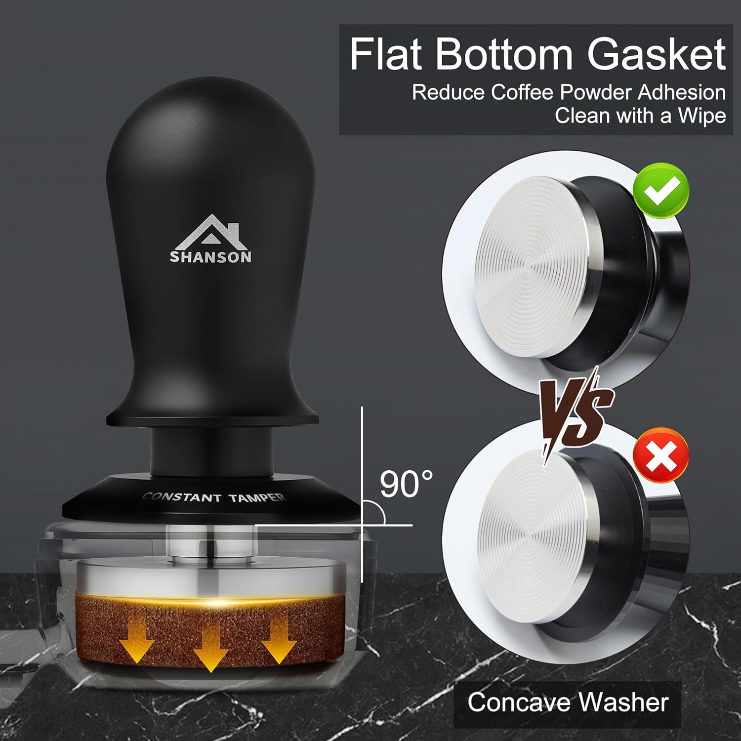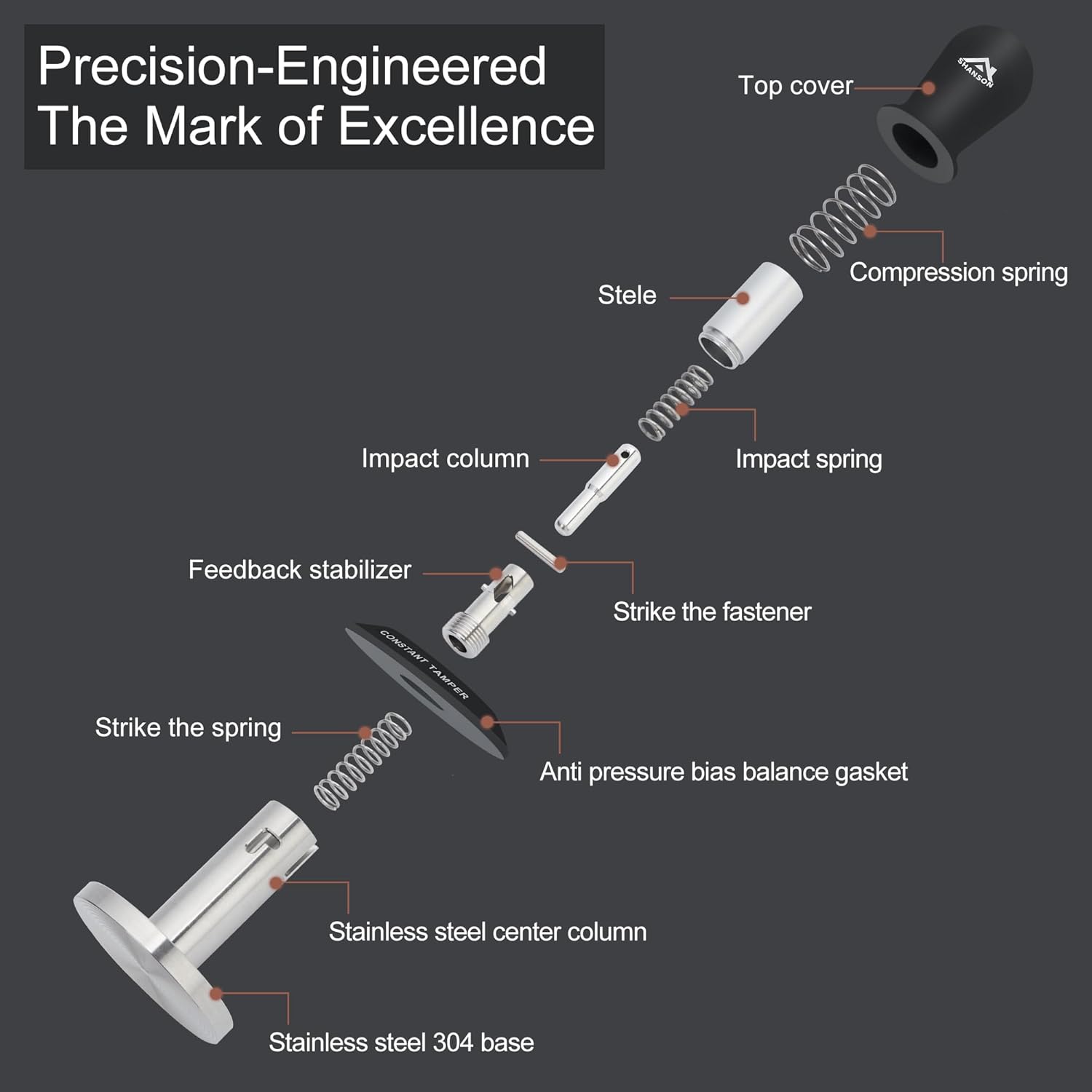 - 【Professional 3 Spring Pressure System】Compression Spring - Delivers even pressure throughout the entire tamping process;Tapping Feedback Spring - Provides an obvious sound when optimal pressure is reached;Impact Damping Spring - Ensures smooth, bounce-free retraction for rapid reuse.
