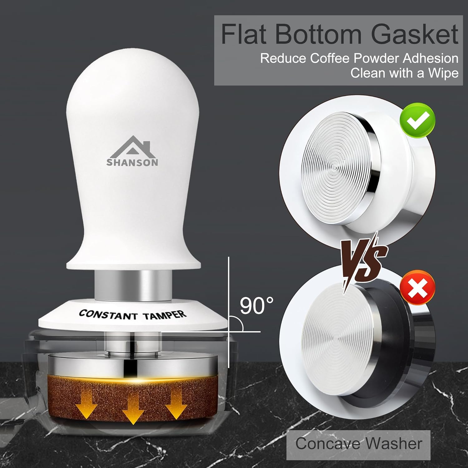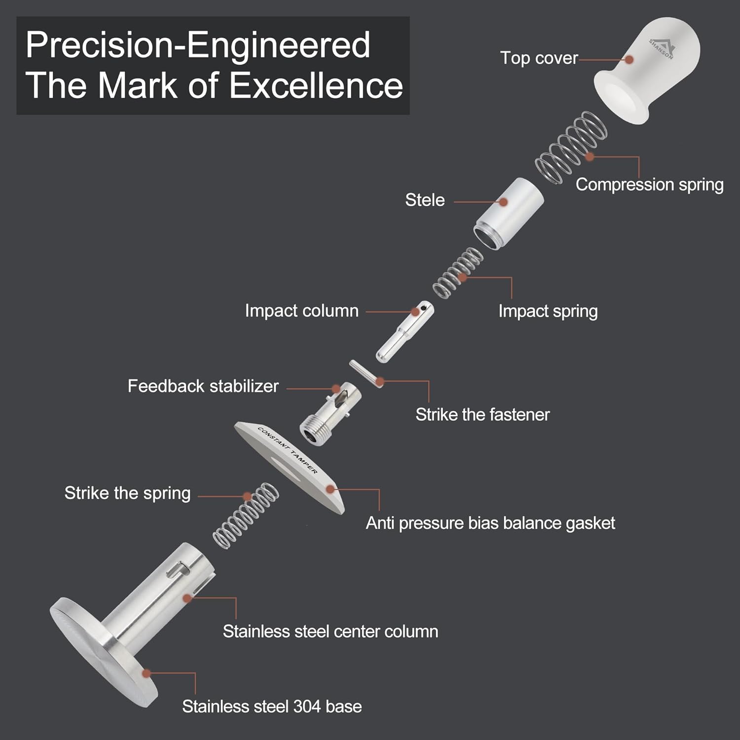 • 【Professional 3 Spring Pressure System】Compression Spring - Delivers even pressure throughout the entire tamping process;Tapping Feedback Spring - Provides an obvious sound when optimal pressure is reached;Impact Damping Spring - Ensures smooth, bounce-free retraction for rapid reuse.