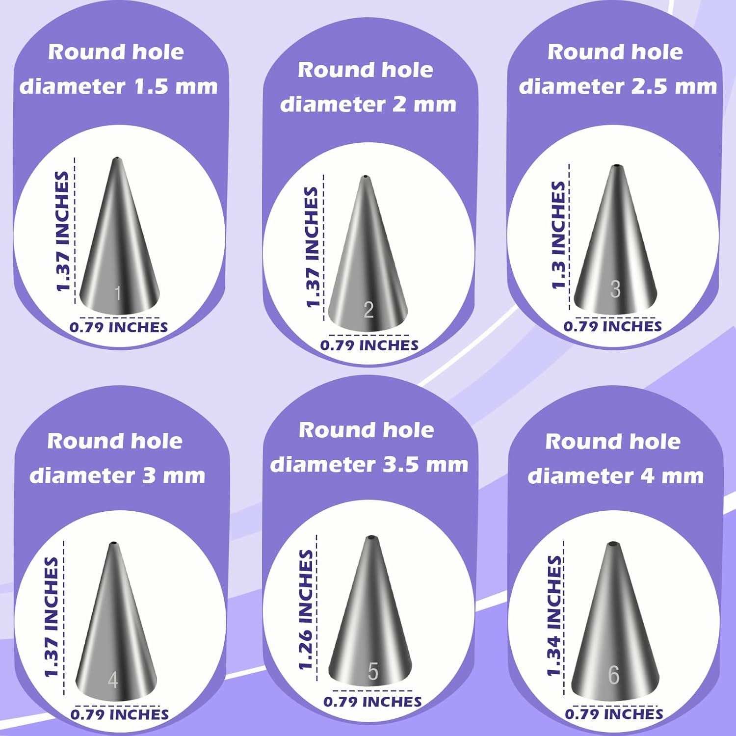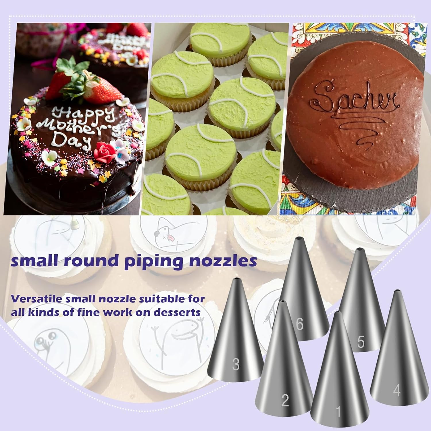 - Essential Decorating Kit: This complete 1-6 tip range covers all your small-round piping needs, from ultra-fine details (#1) to bolder accents (#6). Must-have for intricate cookie decorating, cake detailing, and professional-looking finishes