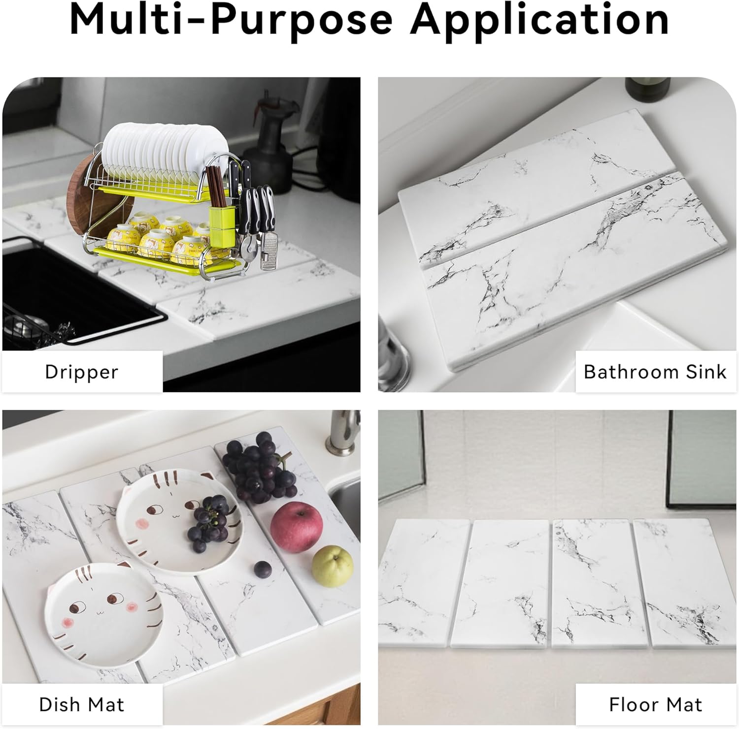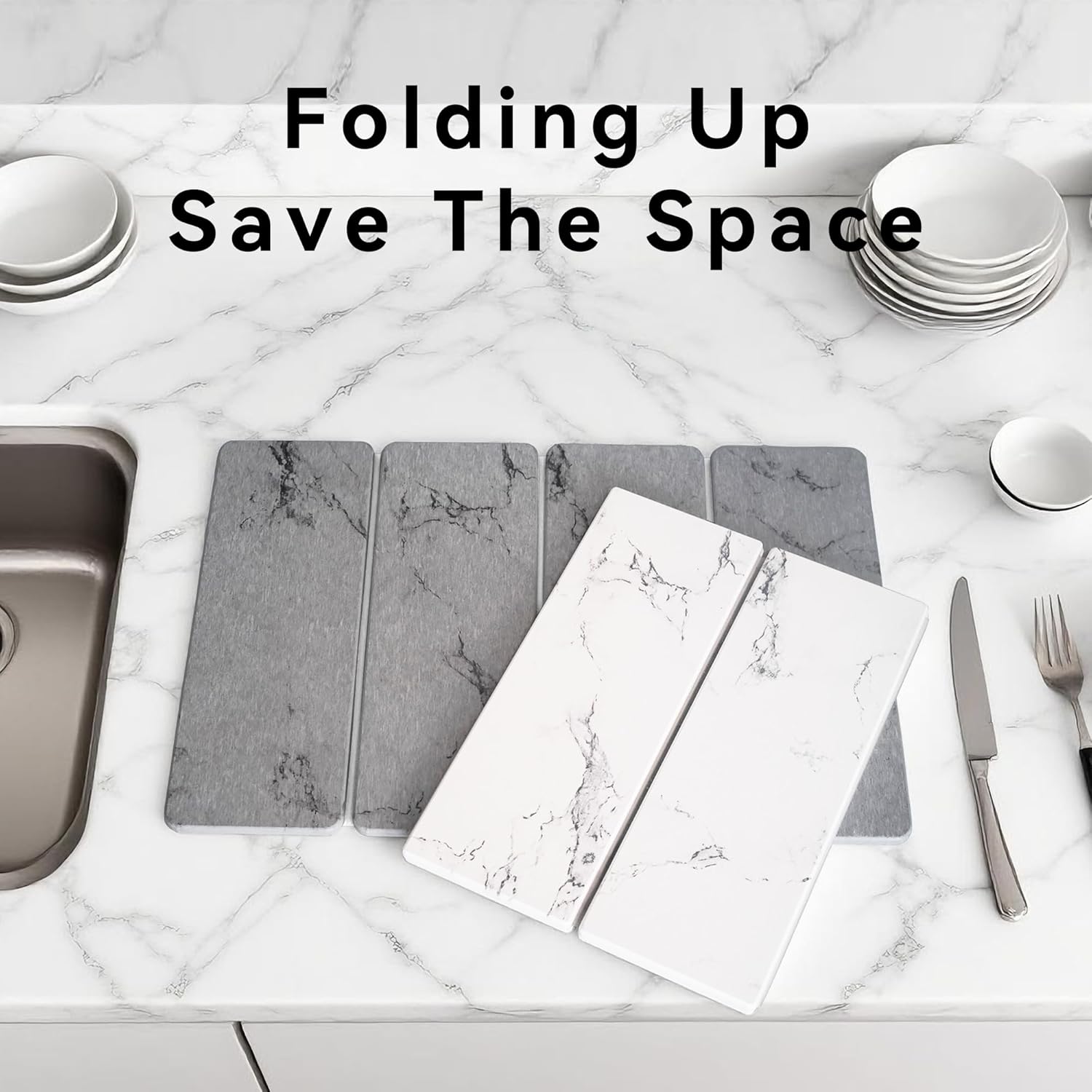 Stone Dish Drying Mat for Kitchen Counter, 24" x 16" Diatomaceous Earth Drying Mat, Foldable Stone Drying Mat, Super Absorbent Fast Dry Stone Mat, Drying Board Diatomaceous for Kitchen, Marble White