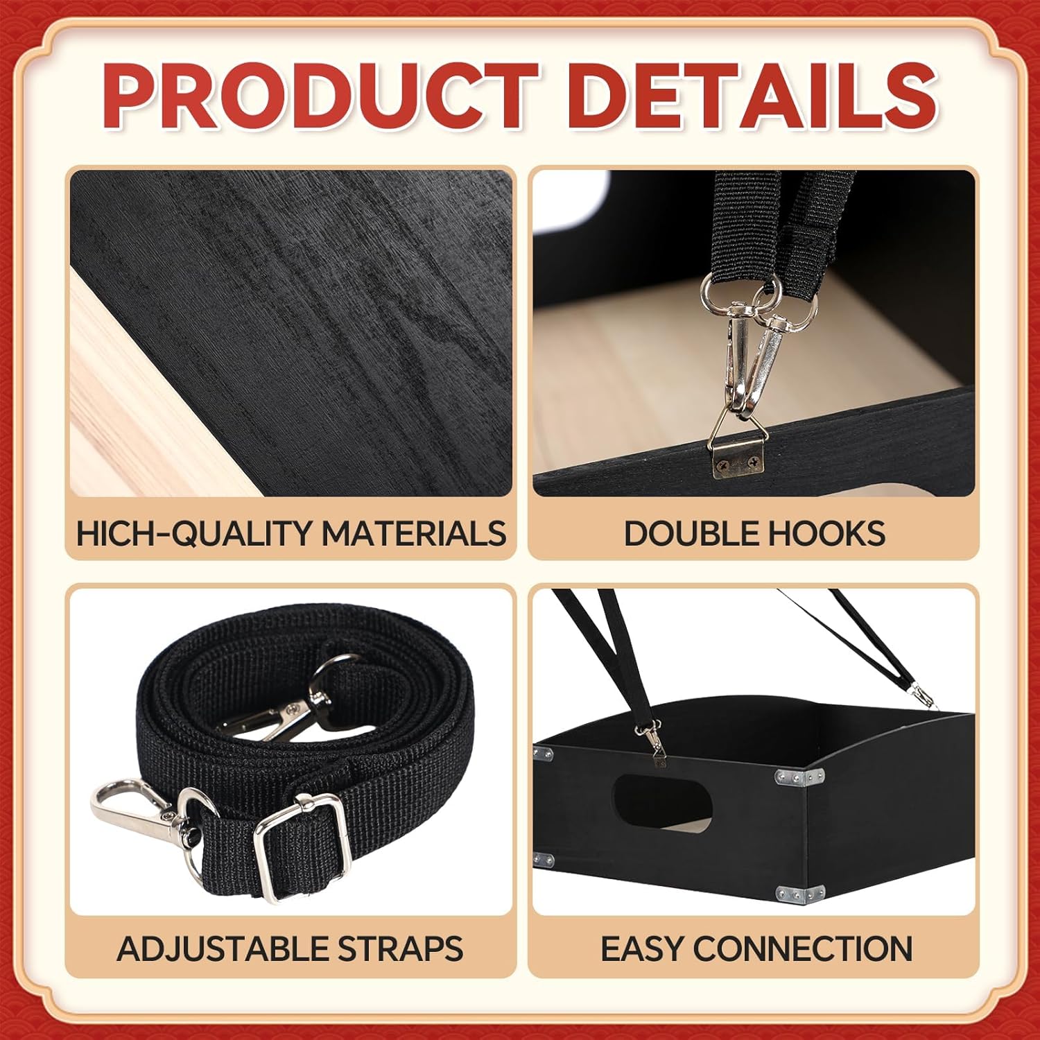 - Complete Vintage Snack Tray Set: Includes 1 large wooden snack tray and 2 adjustable black elastic shoulder straps. A perfect blend of vintage charm and everyday practicality—ideal for 1920s theme parties, carnivals, costume events, and stage performances.