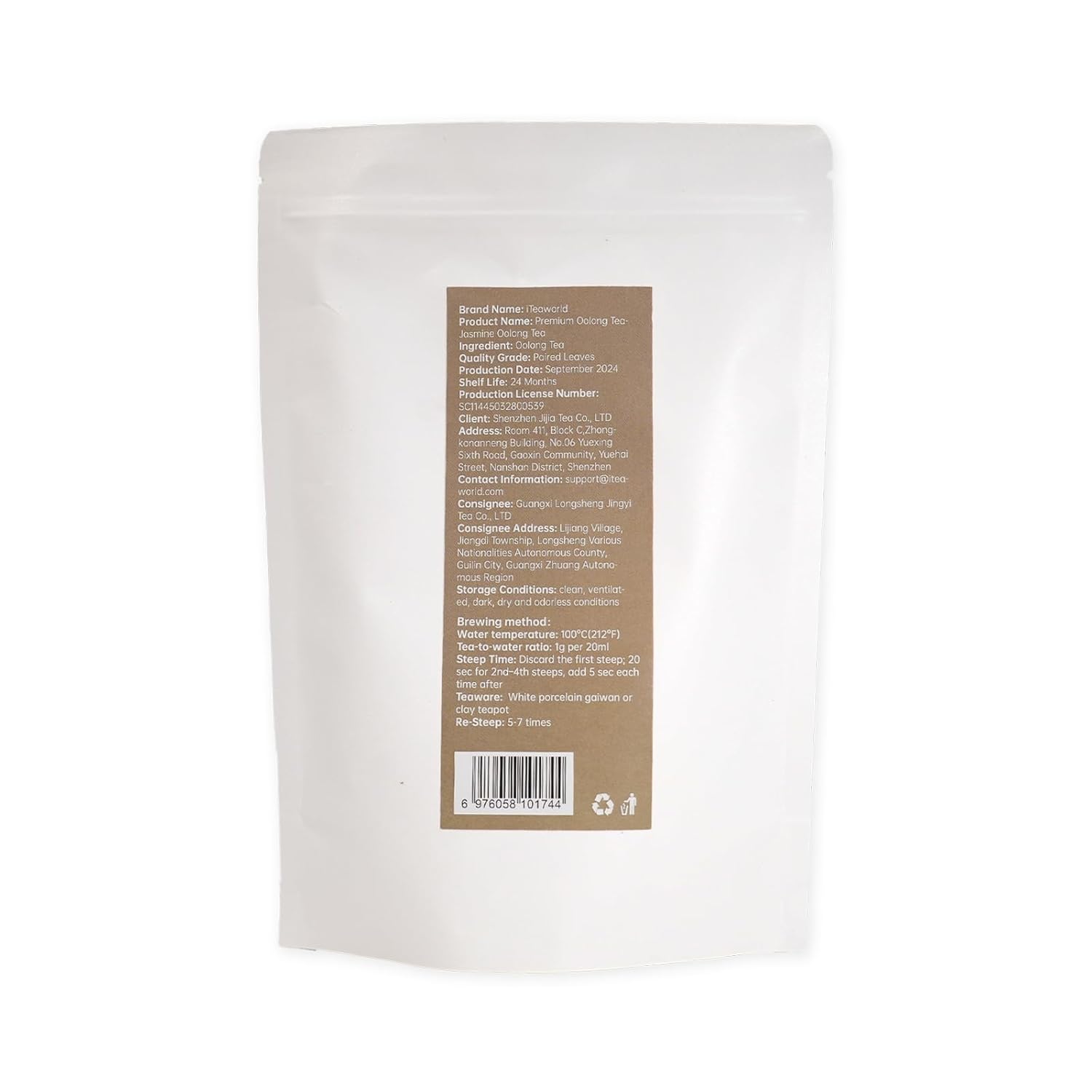 - Healthy and Additive-Free: This jasmine oolong tea contains no flavorings, no sugar, and no preservatives. It's perfect for an office refresher, a post-meal sip, or an outdoor picnic. The eco-friendly bulk packaging reduces packaging waste, and the sealed bag keeps it moisture-proof and fresh, allowing you to brew whenever you want.