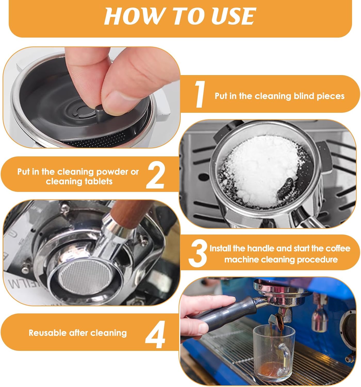 - Easy to Use: This 54mm back flush disc is easy to install. First, remove the metal coffee filter from the handle of the espresso, then insert the cleaning disc, add the cleaning tablets, reinstall the handle, and finally turn on the cleaning function of the coffee machine