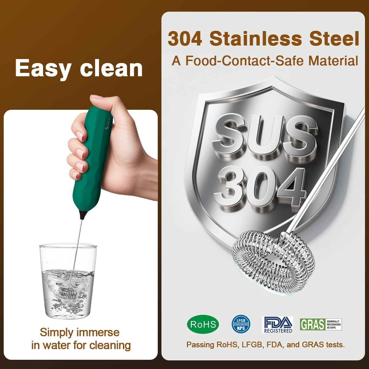 - Barista-Style Froth in 15 Seconds Whip up creamy, velvety foam for lattes, cappuccinos and matcha drinks with our professional handheld milk frother. The dual stainless steel whisks create rich, café-quality froth faster than single-whisk models. Ideal for coffee lovers who enjoy specialty drinks at home without expensive equipment.