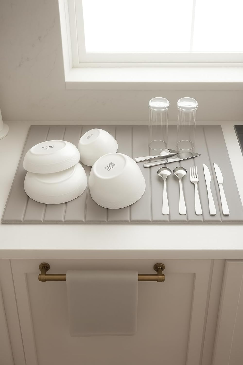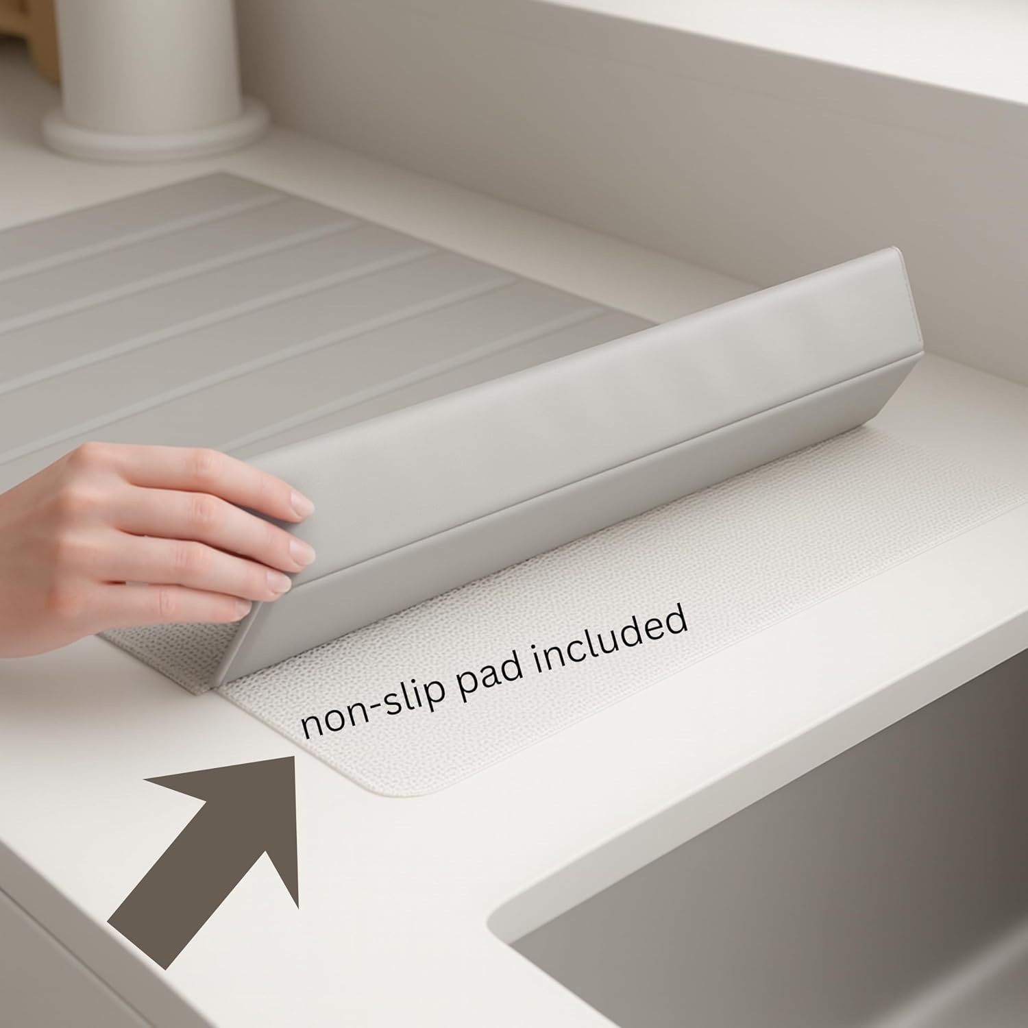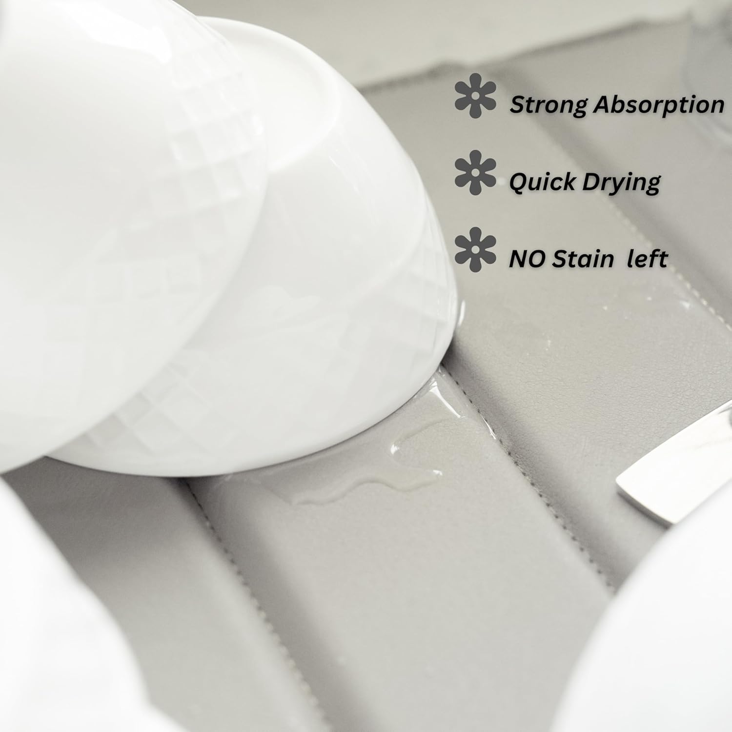 - Folds into a Drawer-Friendly Size: When unfolded, the large dish drying mat measures 25" x 15", so there's room for a mountain of dishes; When you're not using it, the stone dish mat folds into a small, storage-friendly size