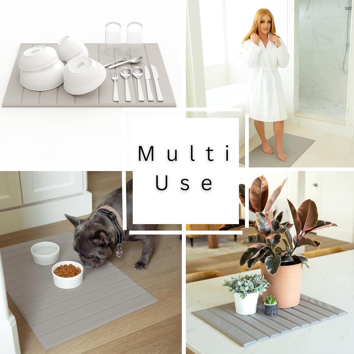 - Our Mat Is an All-Around Home Helper: The water-absorbing properties of our fast drying stone mat work regardless of the water source, so it's great for wet dishes, shower droplets, pet water bowls, or plant overflow