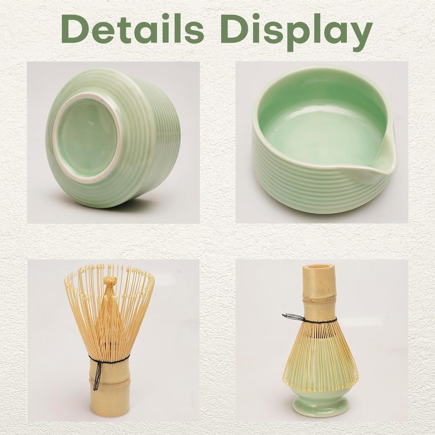 Matcha Whisk Set - 4PCS Matcha Set Includes Matcha Bowl with Spout, Matcha Whisk Holder, Bamboo Whisk and Bamboo Scoop, Ceramic Matcha Kit