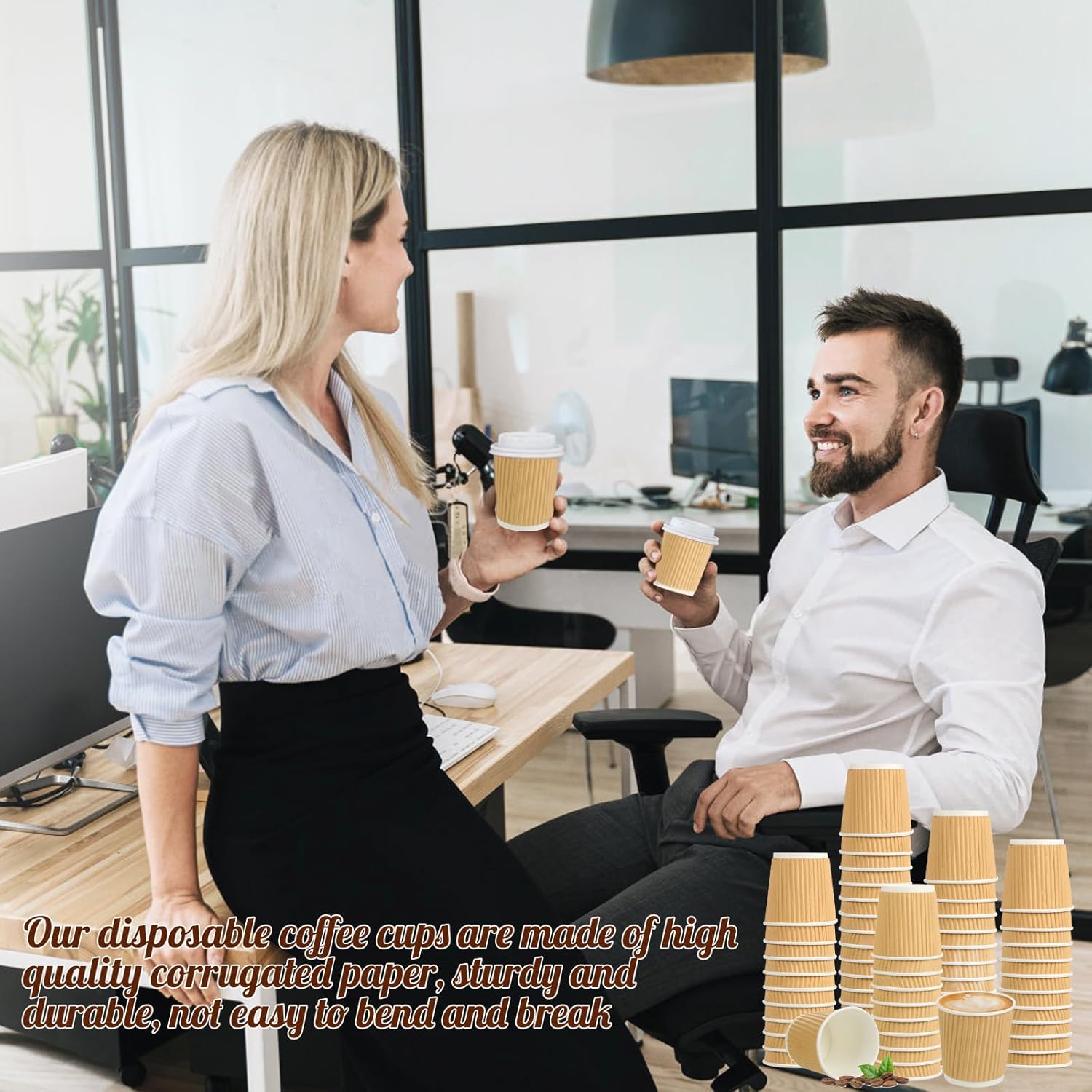 - 【Sturdy and Durable】Our disposable coffee cups are made of high quality corrugated paper, sturdy and durable, not easy to bend and break. The rolled edge design strengthens the edges of the disposable paper cups to prevent unwanted spills and deformation.