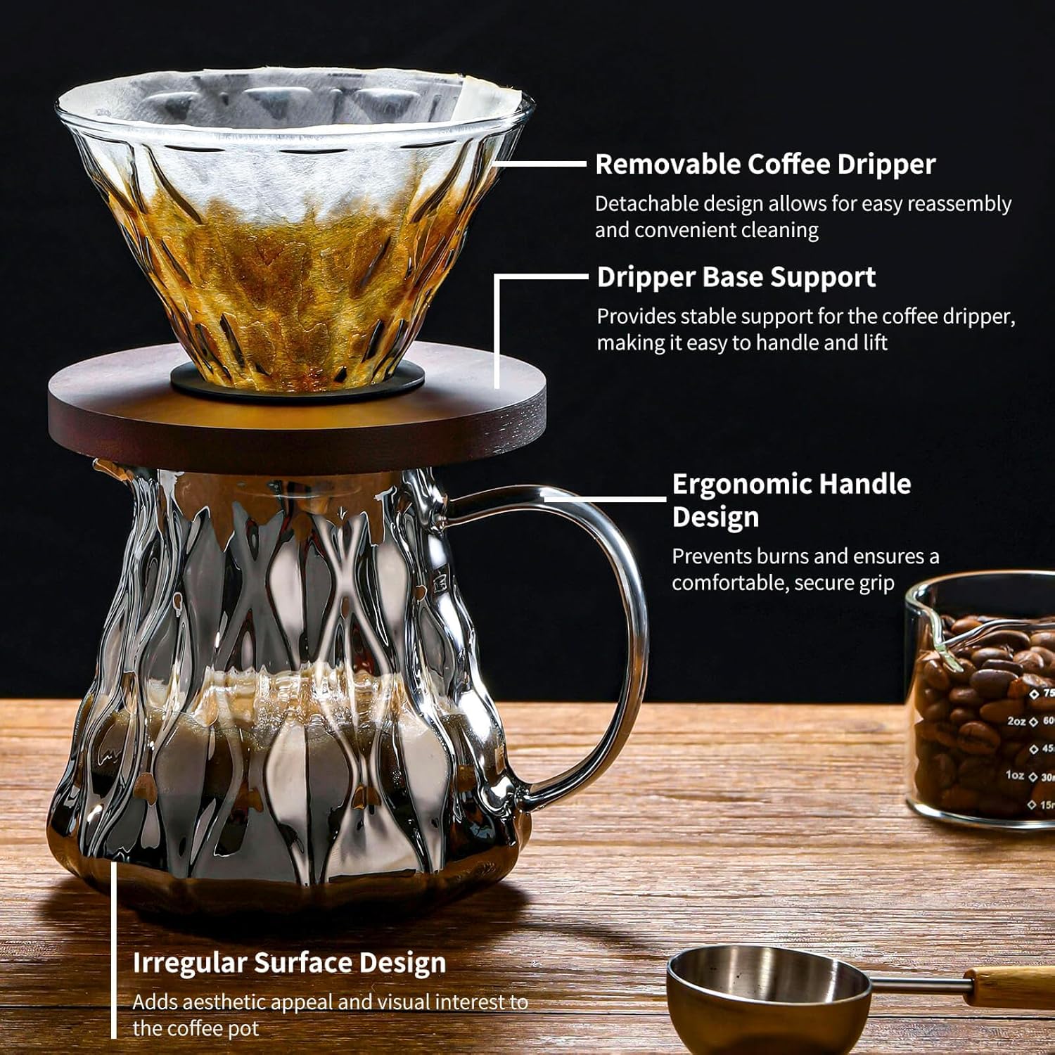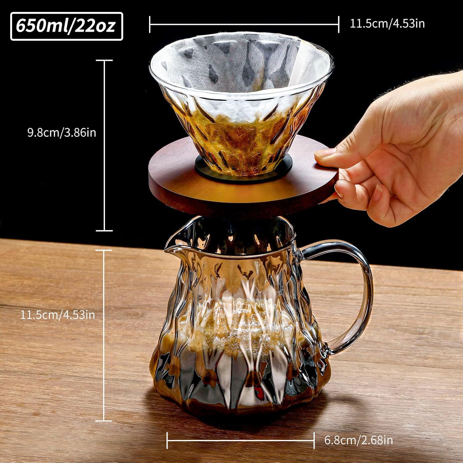 - Elegant Pour Over Coffee Maker for Daily Brewing: Brew smooth, aromatic coffee at home or in the office with this 650ml/22oz pour over coffee maker—perfect for daily use by coffee lovers seeking control and flavor.