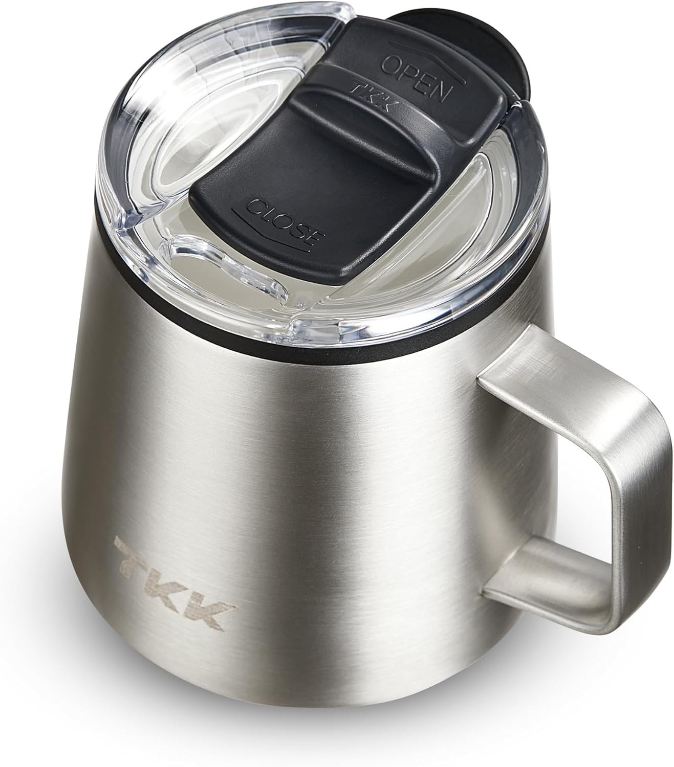 TKK 12 oz Insulated Coffee Mug with Handle Ceramic Coating Detachable Slider Lid Stainless Steel Tumbler Double Wall Vacuum Travel Cup