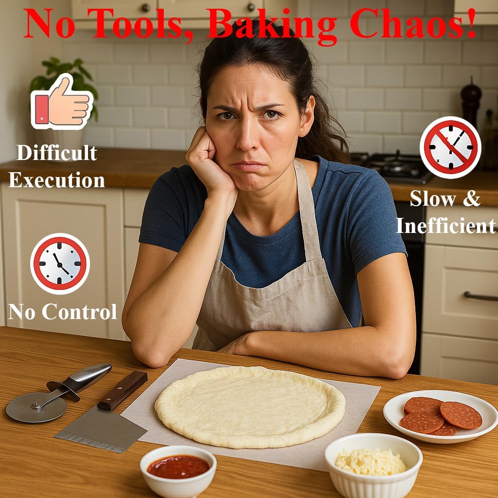 4 PCS Lattice cutter pastry tool roller with bench scraper and pizza cutter – stainless steel wood handle for pie top crust rolling, puff pastry, sourdough, bread, kitchen tools