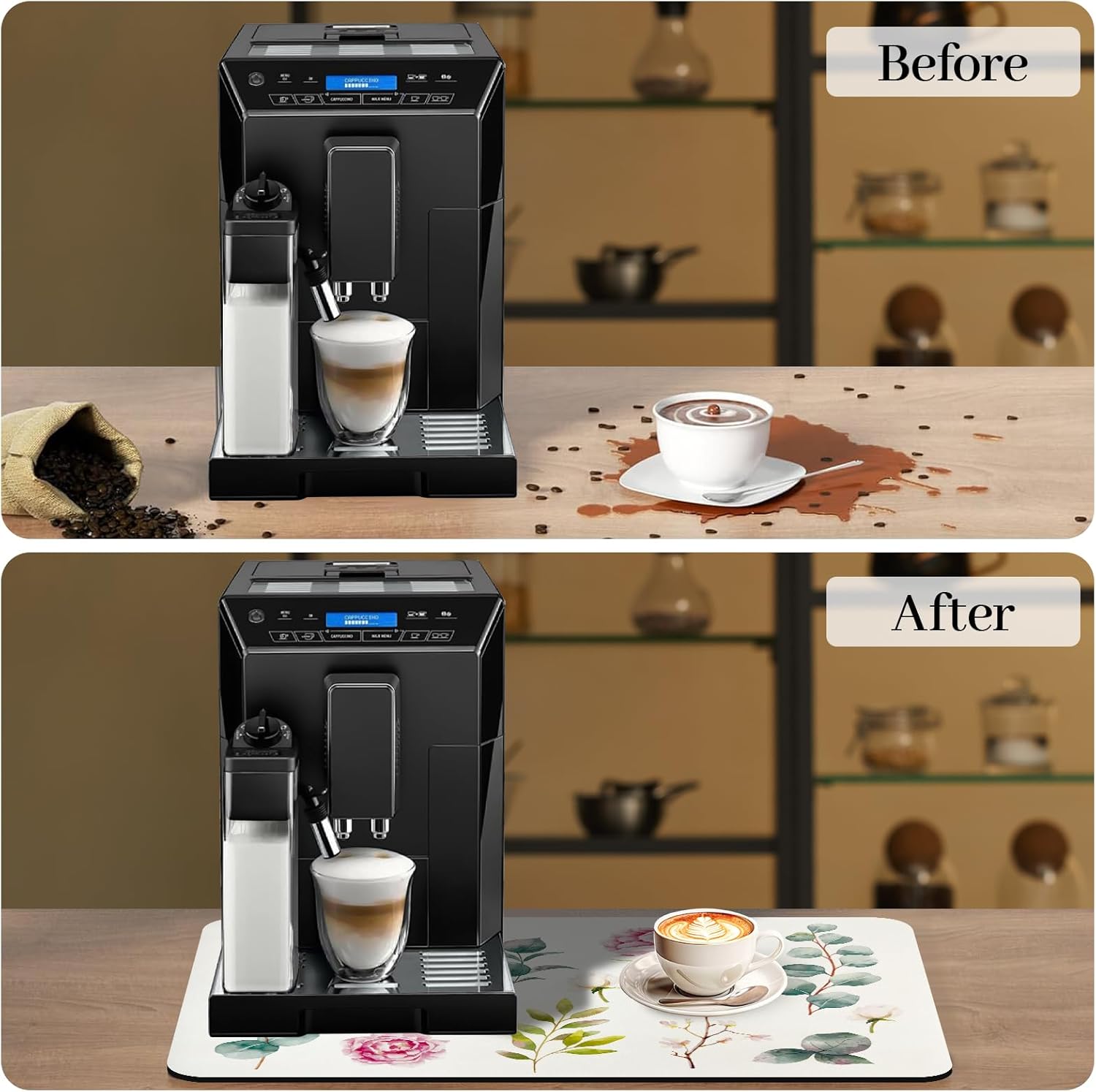 - 【More Scientific Material Design】In addition to its water absorption capacity under normal use, this mat is soft and cushioned, aesthetically pleasing, easy to clean, protects the coffee maker/utensils, and more. To maintain functionality, please clean the mat regularly, hand and machine washable.