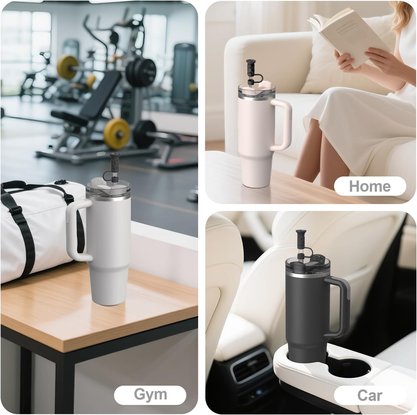 - 【Universal Seal】Creates an airtight seal for 9-10mm reusable straws (plastic/glass/metal), blocking dust and insects to keep straws and cups hygienic. Compact size fits Stanley 40 oz/30 oz tumbler with handle.