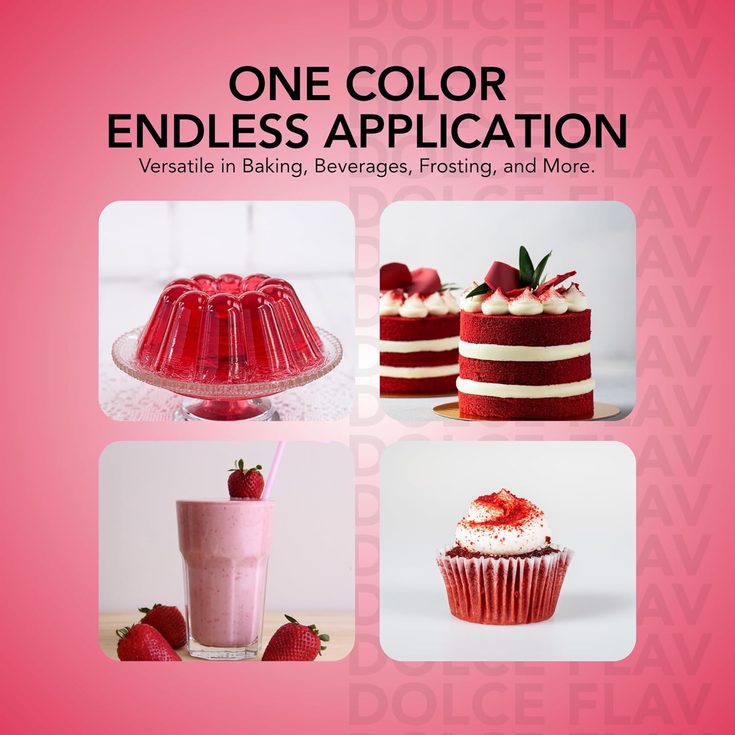 Dolce Flav Natural Red Food Coloring – Vivid Plant-Based Color from Beets | 2 oz Water-Soluble Liquid Dye for Baking, Drinks & Frostings | Graduated Dropper Included | No Artificial Dyes | Kosher | Made in USA