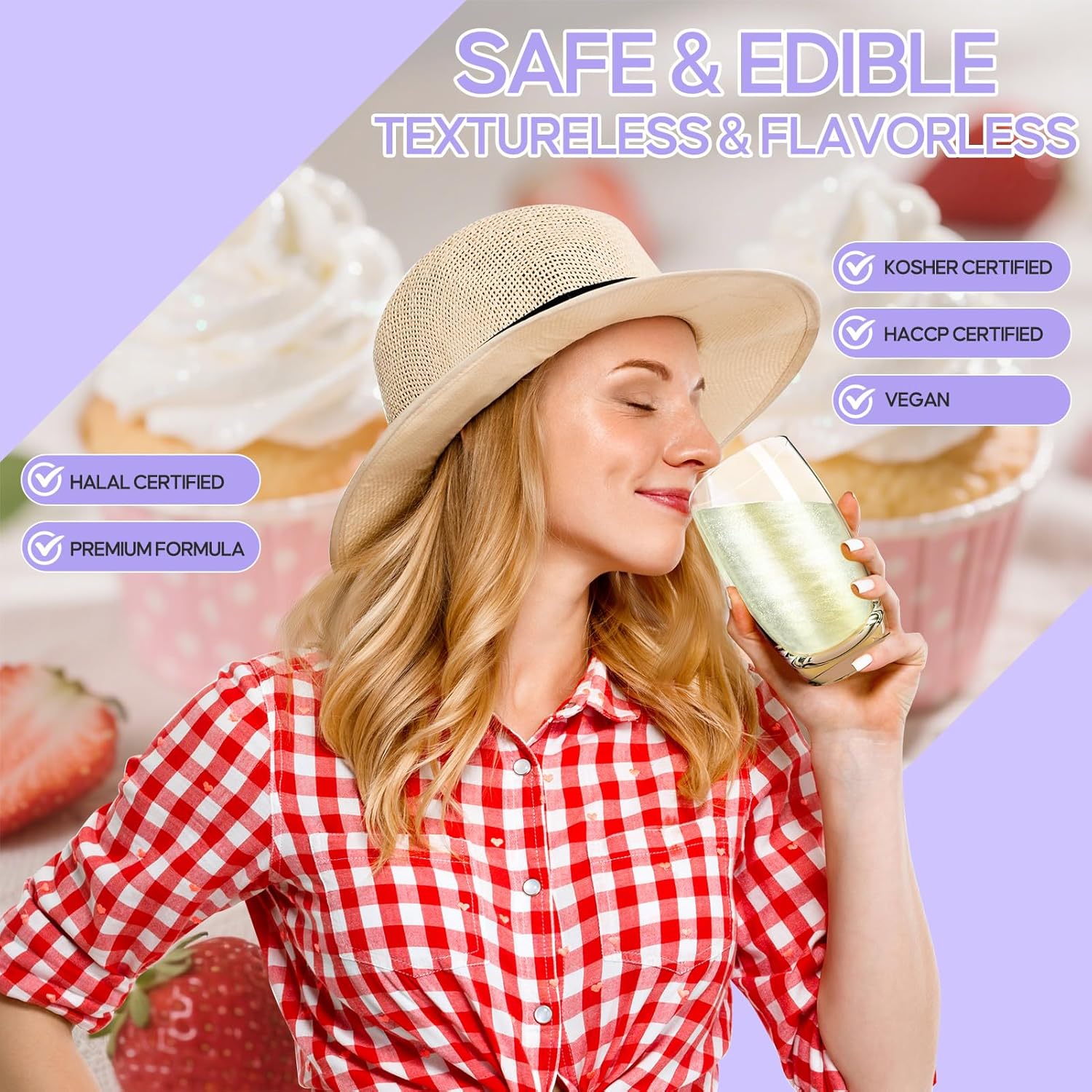 - Food-Safe & Allergen-Free Sparkle - Crafted with certified food-grade ingredients. Gluten-Free, Nut-Free, Dairy-Free & Vegan Friendly. Enjoy tasteless, odorless sparkle that won't alter your food or drink's flavor or texture. Decorate with confidence!